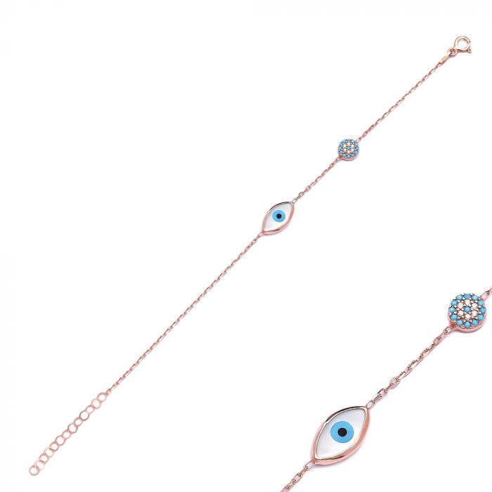 Pulsera de plata de ley 925 con diseño de ojo turco, joyería hecha a mano con piedra turquesa, venta al por mayor