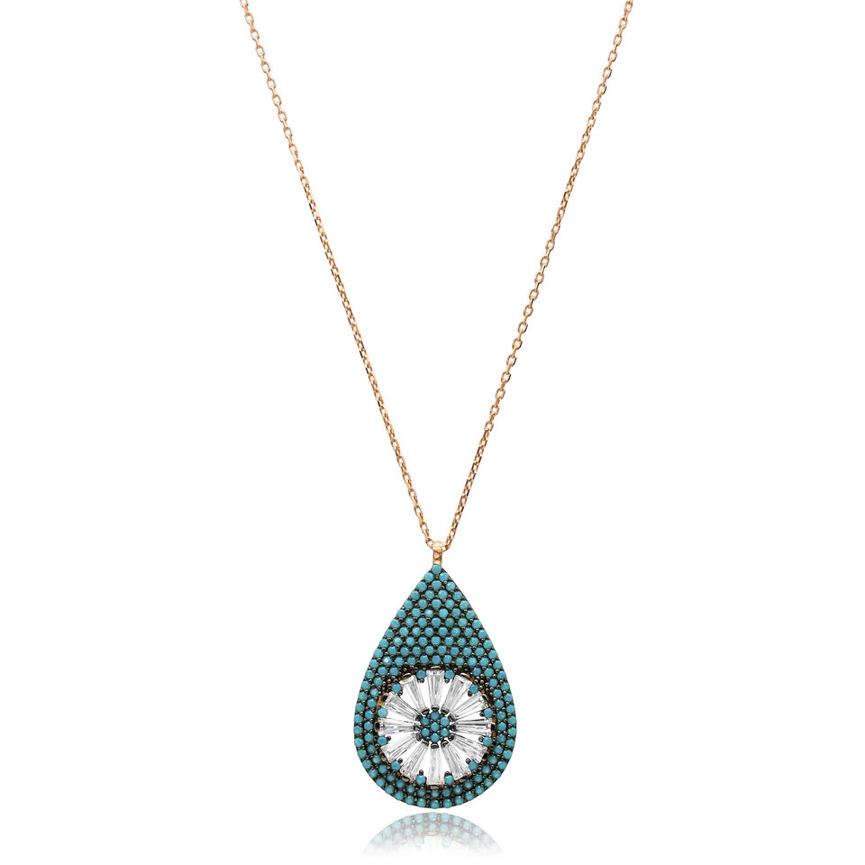 Baguette de diseño de gota de ojo turco y piedra turquesa joyería de plata de ley 925 al por mayor turca