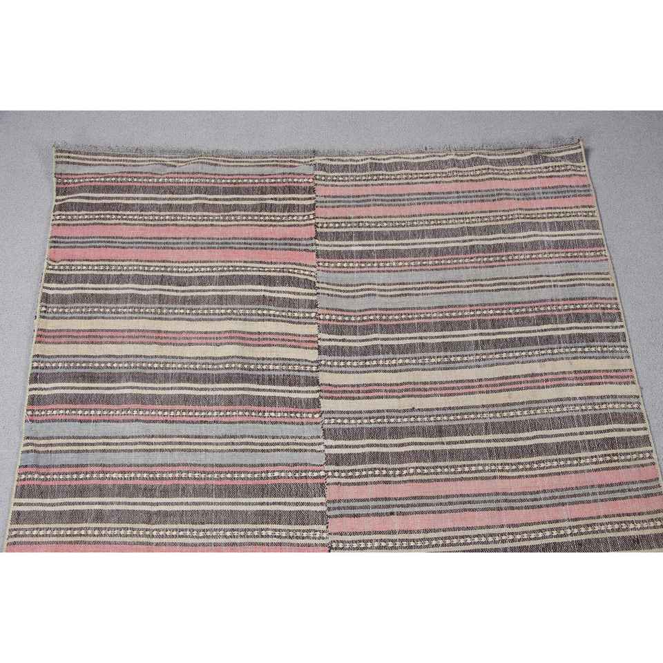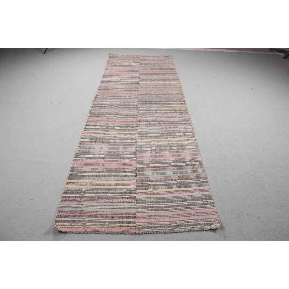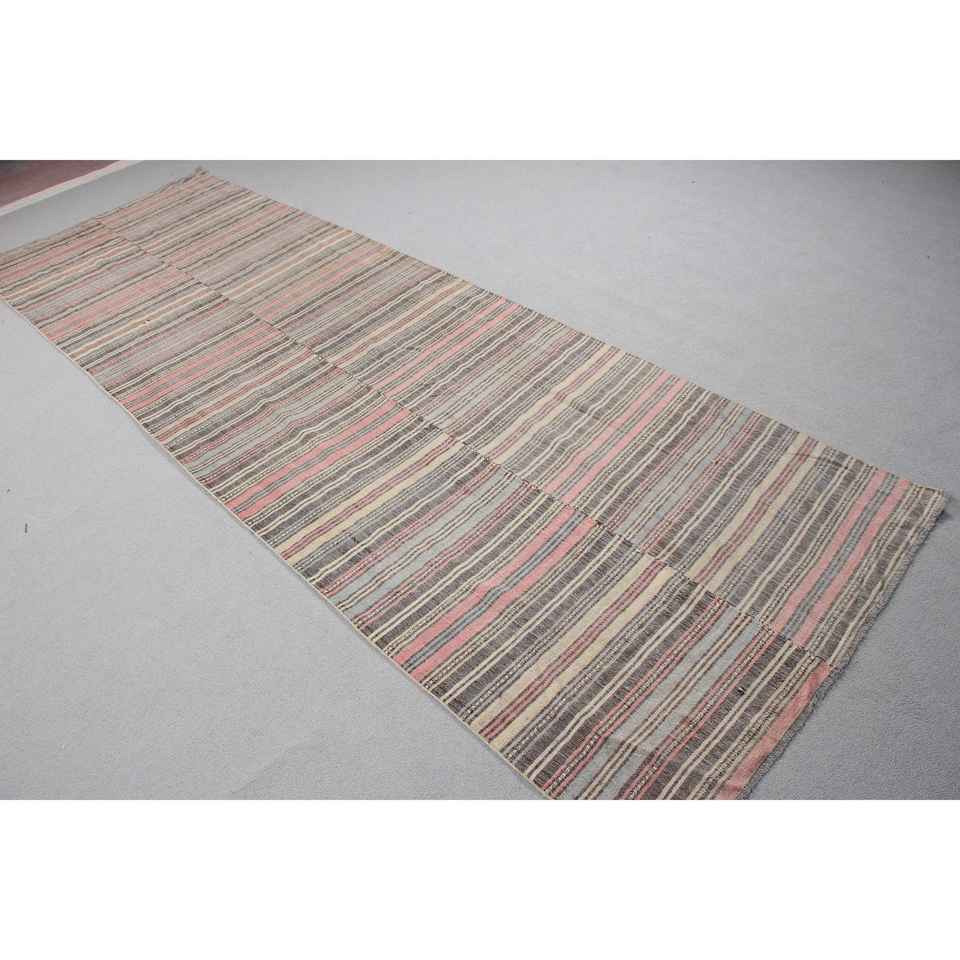 Alfombra Turca Kilim de 3,4x10,4 pies (105x318 cm), Alfombra Vintage Gris con Puntos