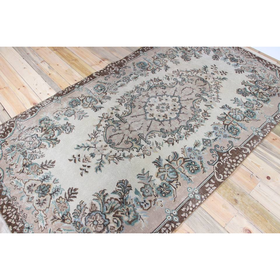 Alfombra Turca Grande de 4.8x8.5 pies, Alfombra Vintage Marrón con Diseño Floral de Lana