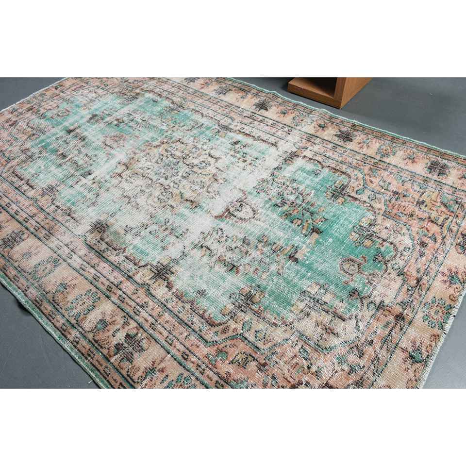 Alfombra Turca Grande, Alfombra Vintage de 6.4x9.8 pies, Alfombra de Lana con Puntos Azules