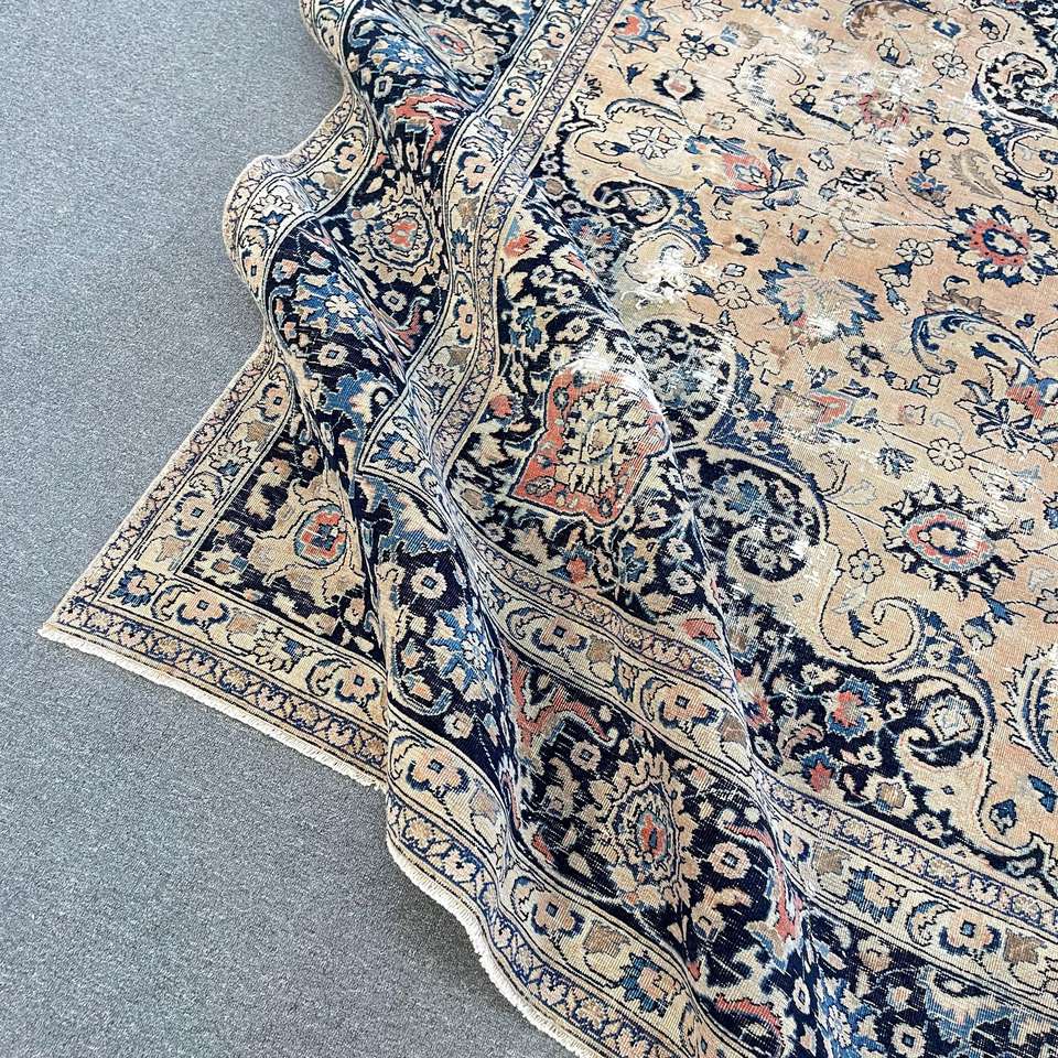 Alfombra Turca Extra Grande de 9.5x12.1 pies (289x369 cm), Alfombra Vintage con Diseño Floral Azul