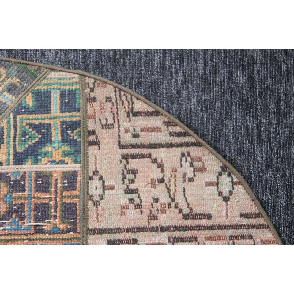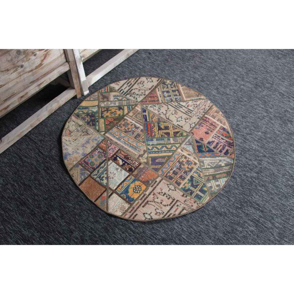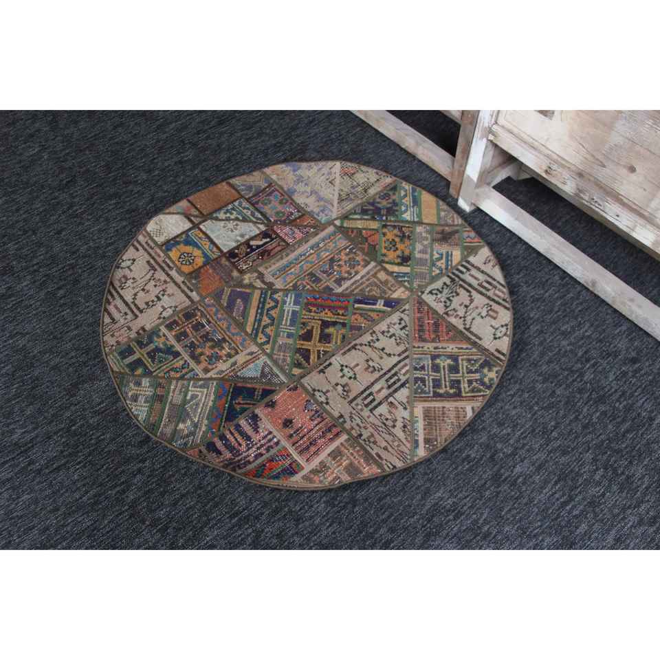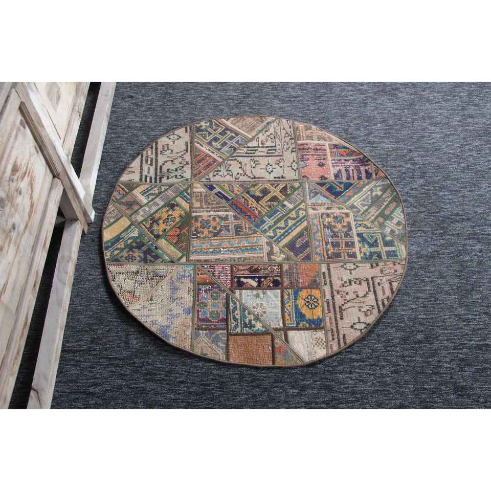 Alfombra Turca Redonda de 3.37x3.37 pies, Alfombra de Lana Vintage con Diseño de Arcoíris en Patchwork