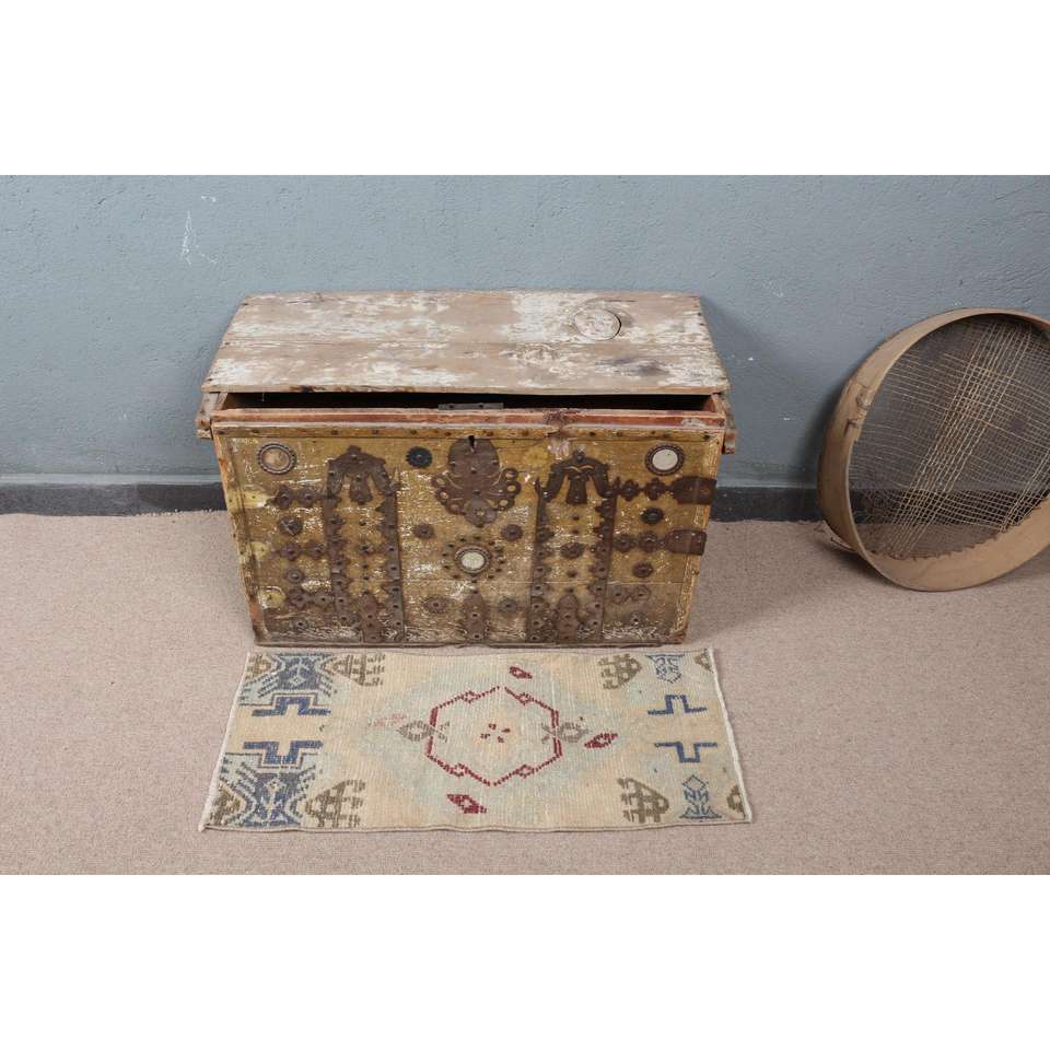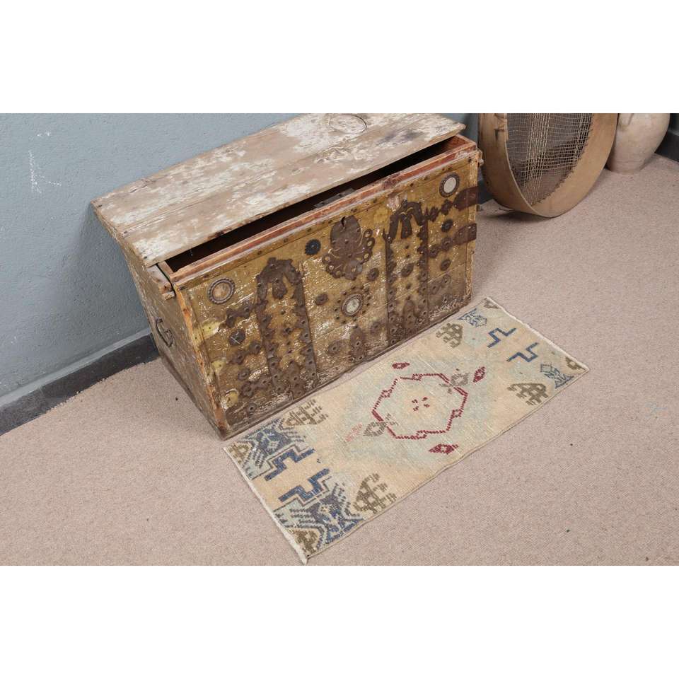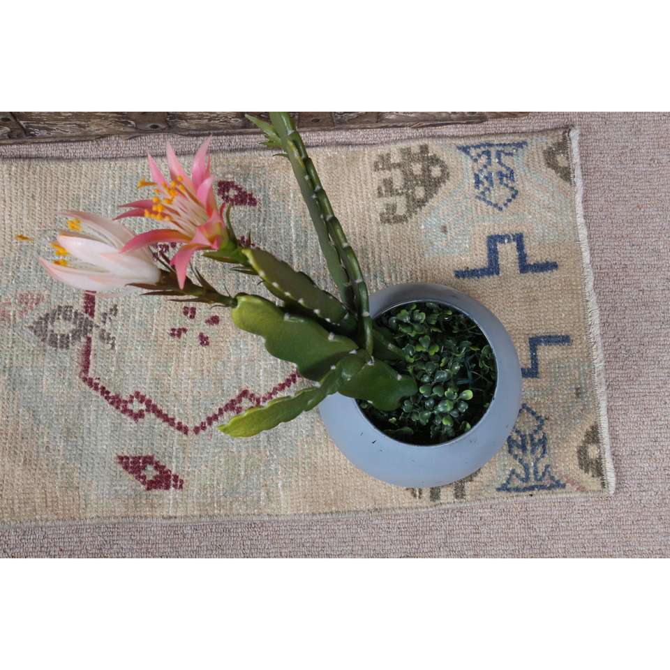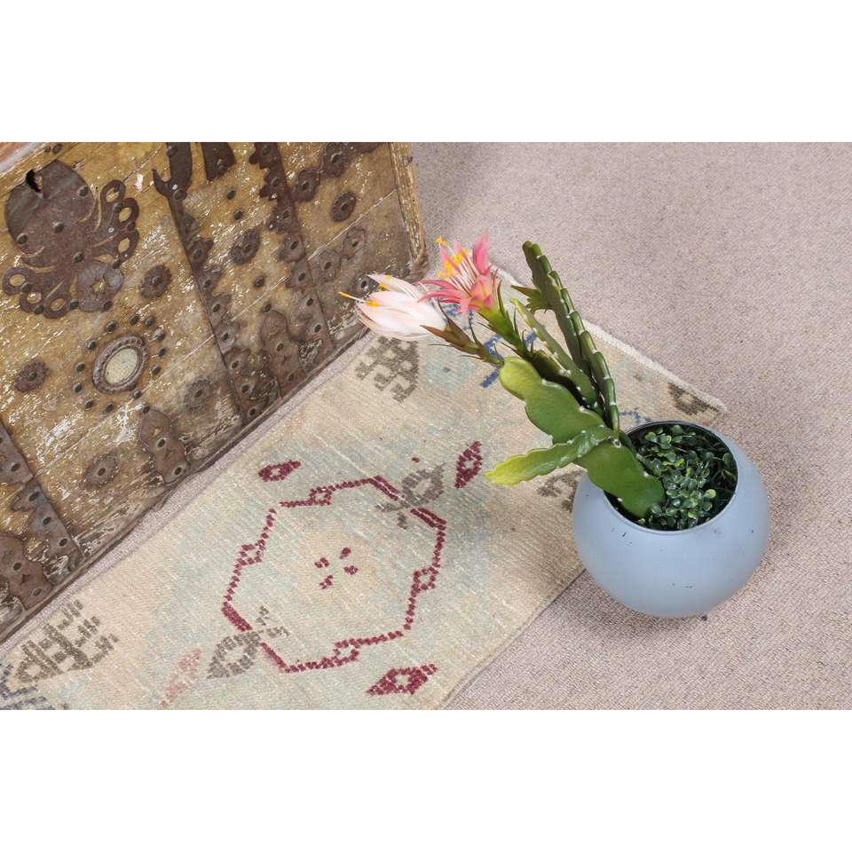 Alfombra Turca, Alfombra Pequeña de 1.2x2.8 pies, Alfombra de Lana Azul y Roja