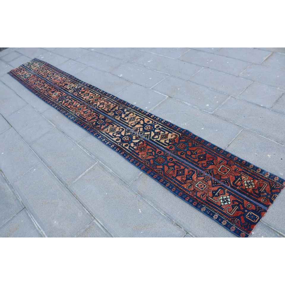 Alfombra Turca de 1.5x12.4 pies, Alfombra Vintage de Lana con Rayas Azules y Rojas