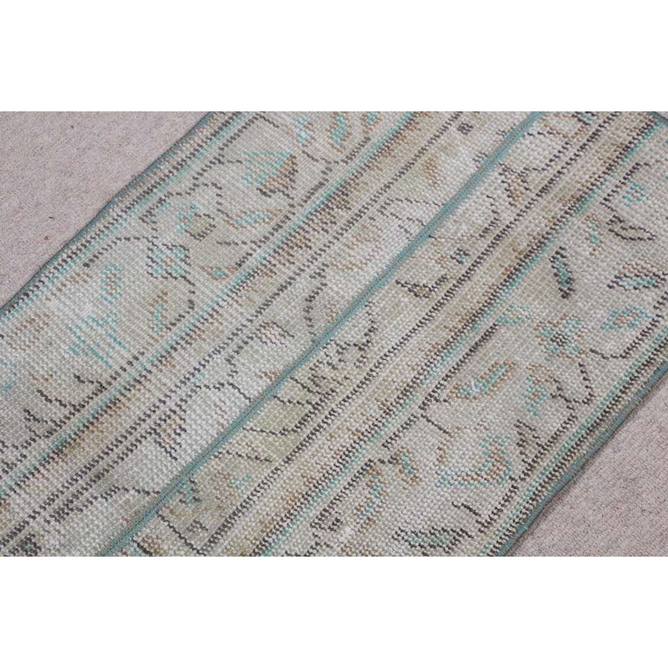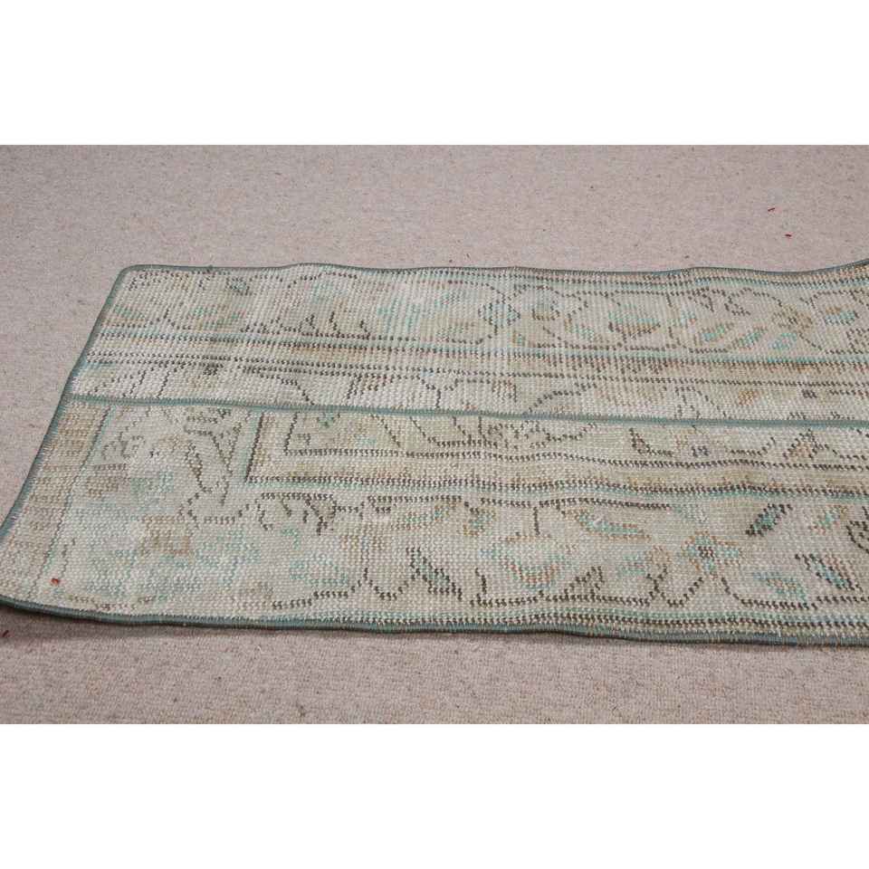 Alfombra Turca de 1.5x2.5 pies (46x76 cm), Alfombra Vintage Azul Abstracta