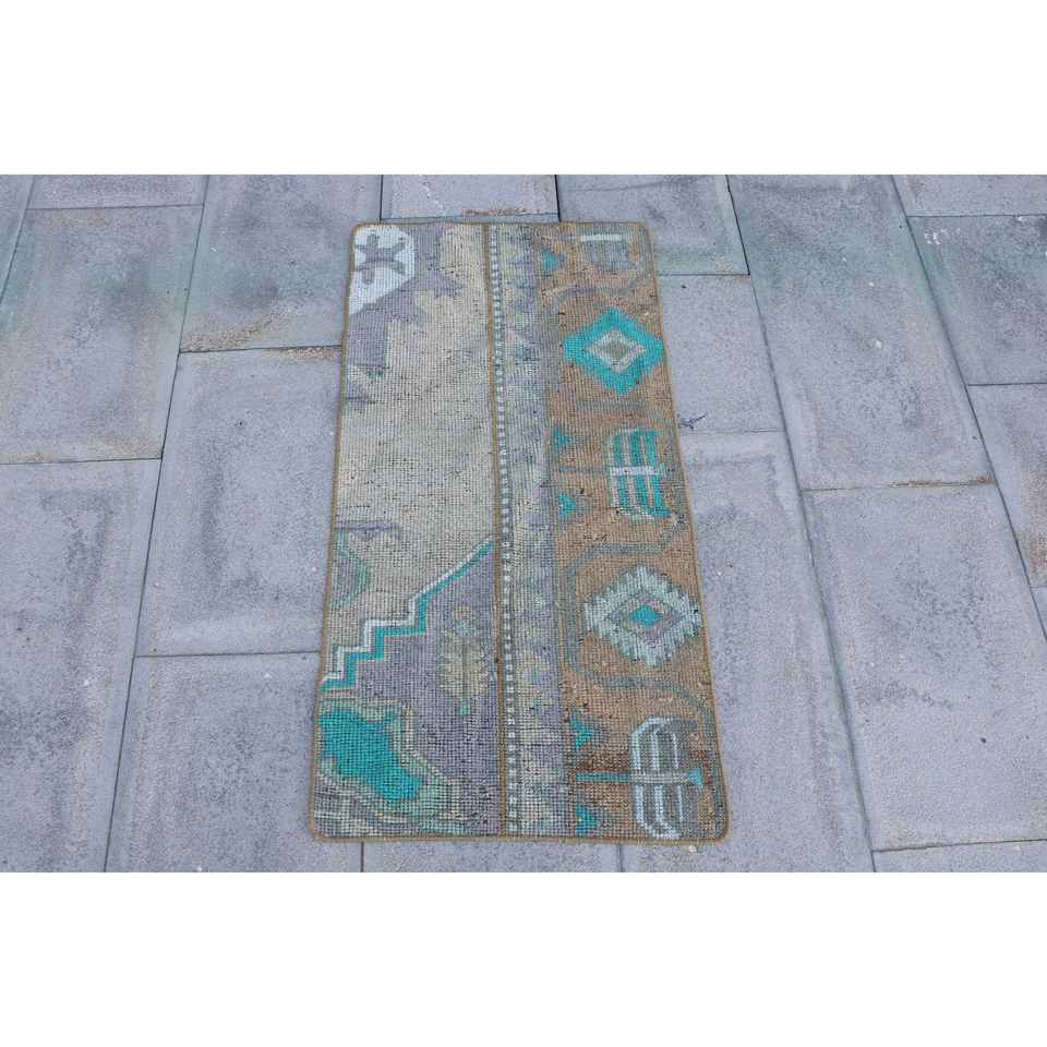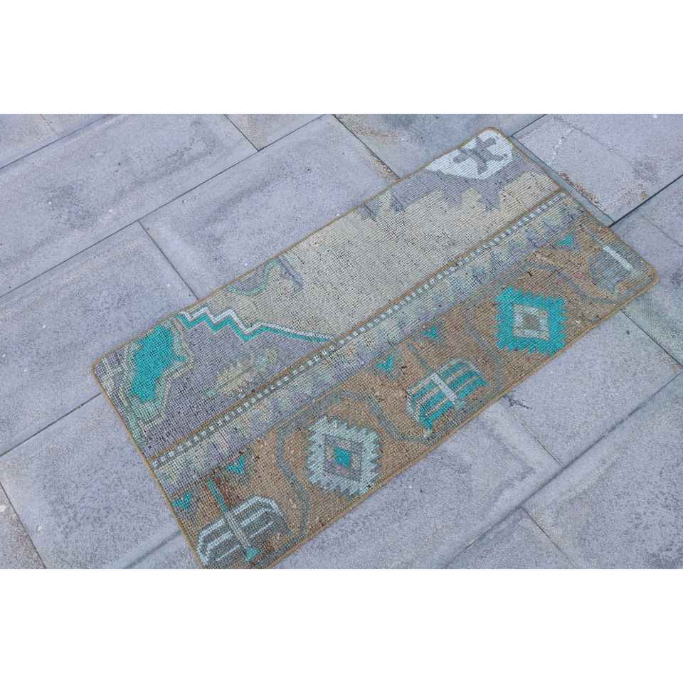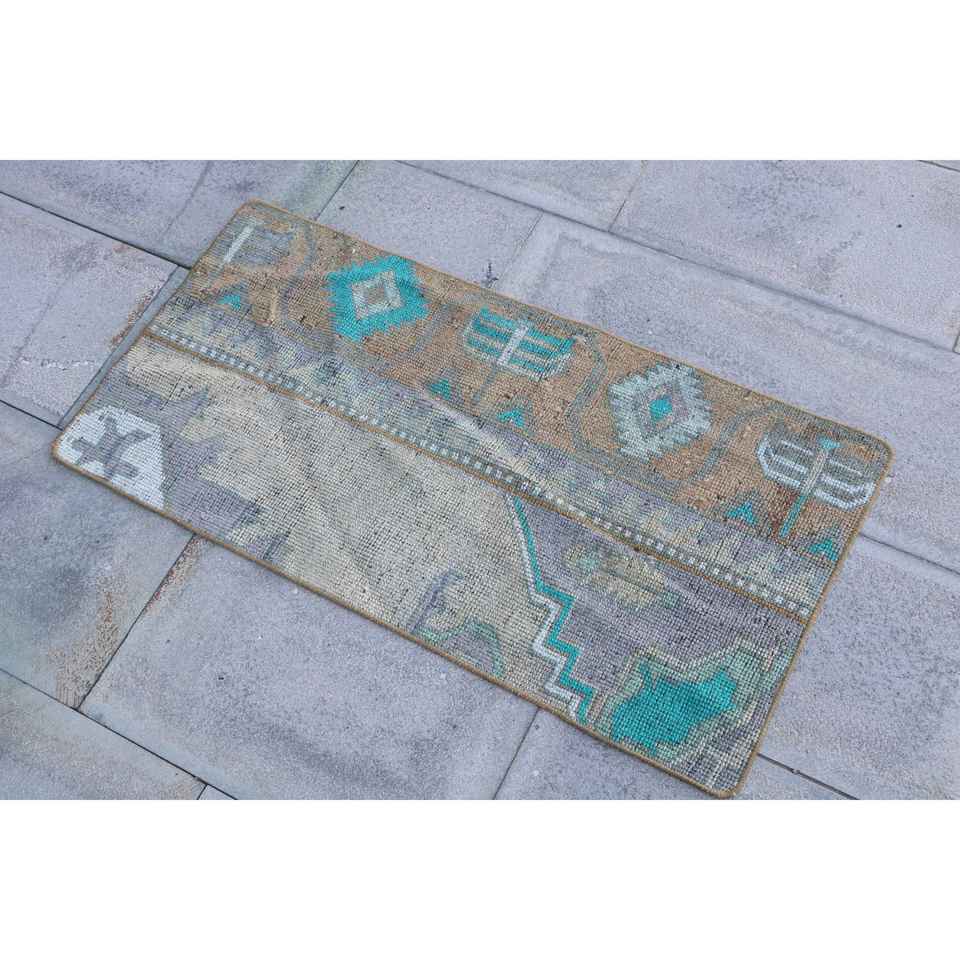 Alfombra Turca, Alfombra Vintage de 1.6x3.2 pies, Alfombra de Lana con Rayas Azules