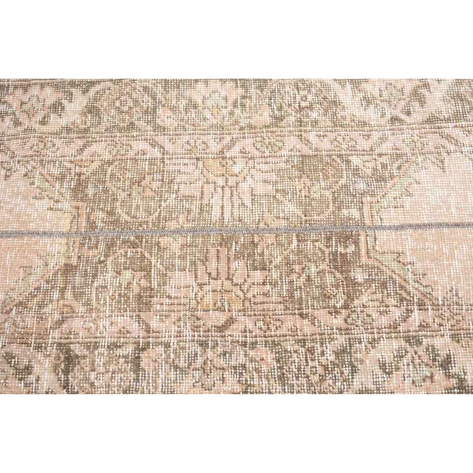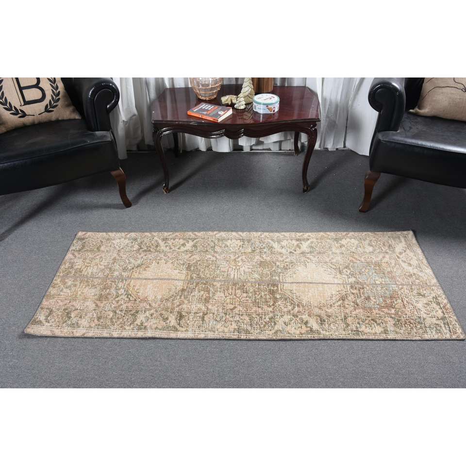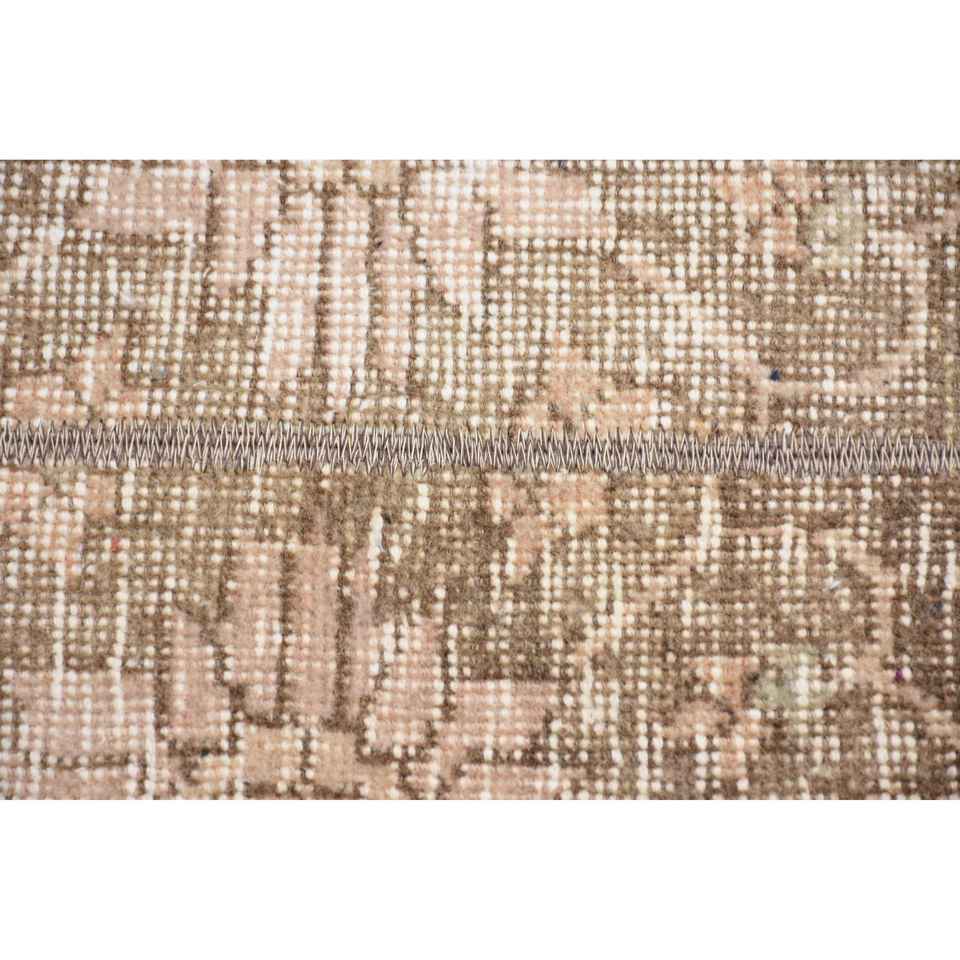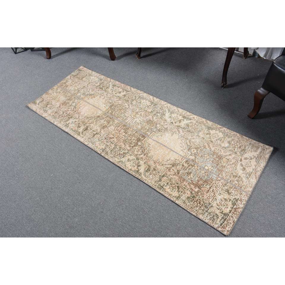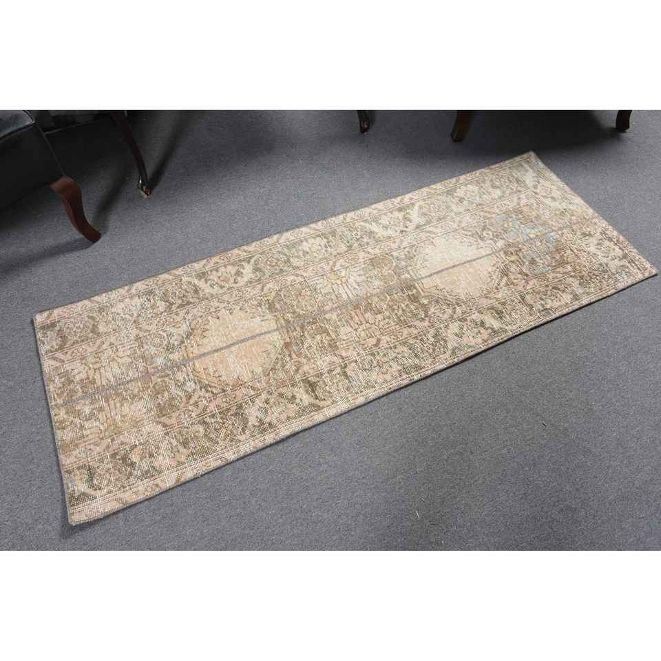 Alfombra Turca de 2.1x6 pies, Alfombra Vintage de Lana con Diseño de Patchwork en Tonos Marrón y Beige