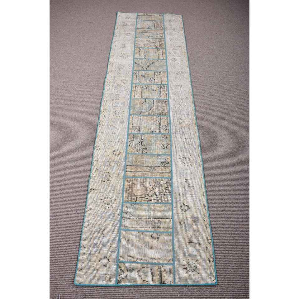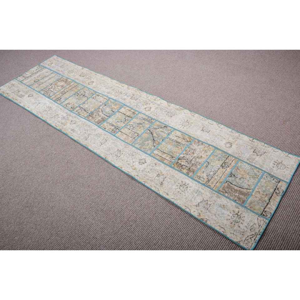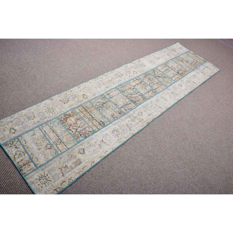 Alfombra Turca, Alfombra de Pasillo de 2,3x8 pies, Alfombra Vintage de Lana Sólida Gris