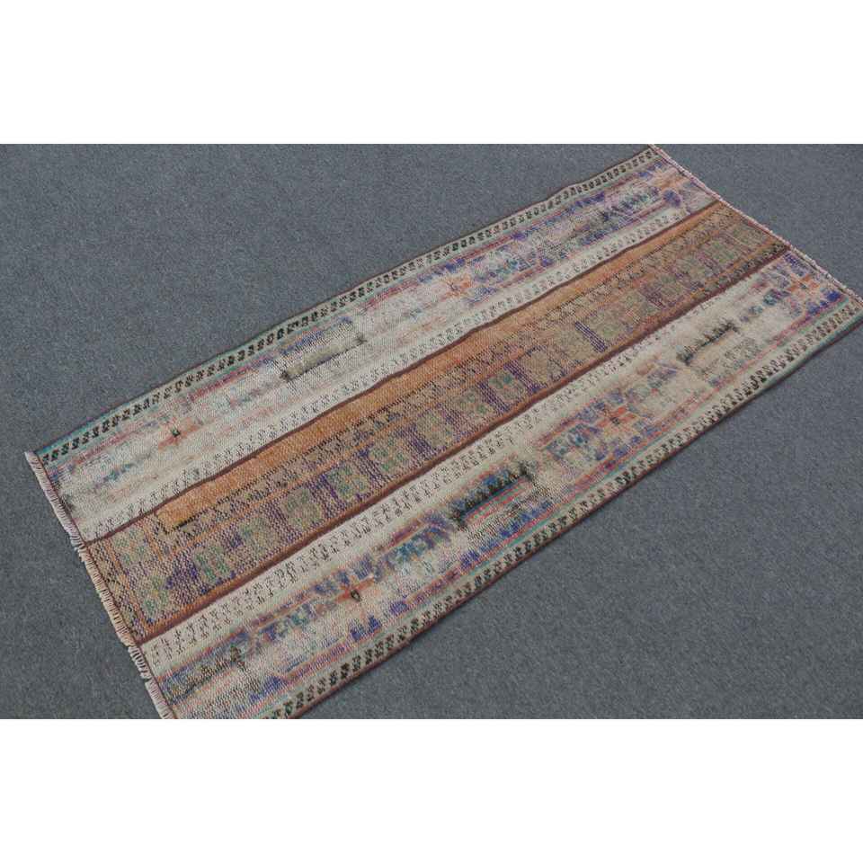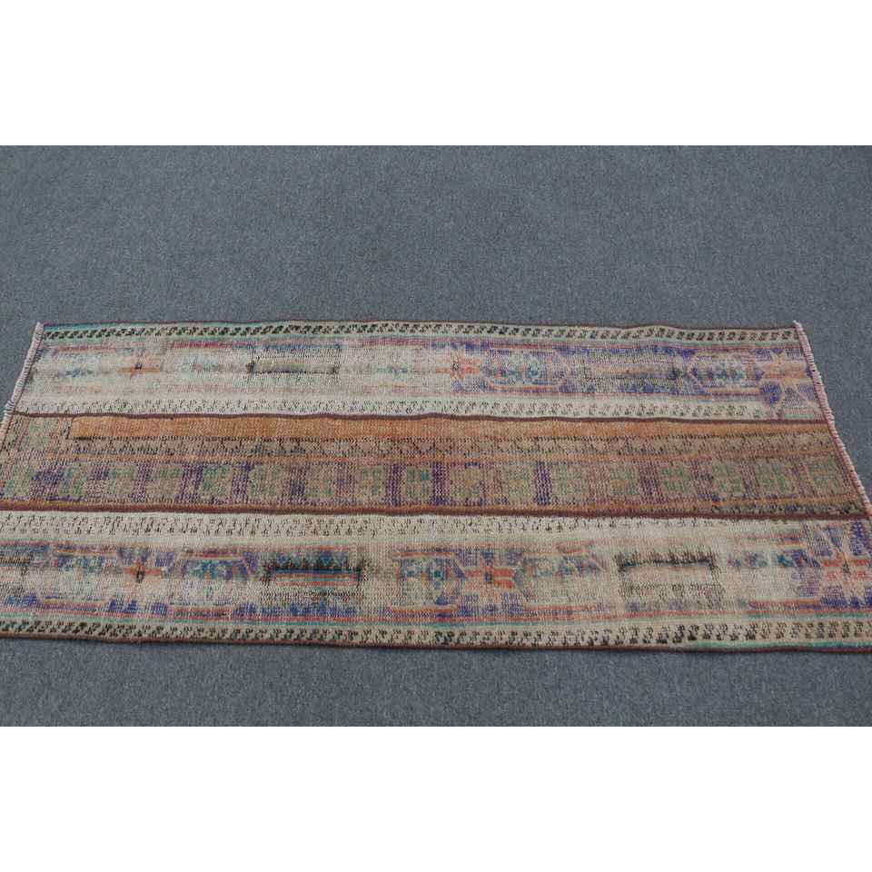 Alfombra Turca 2.4x5.6 pies (74x172 cm), Alfombra Vintage Azul con Puntos