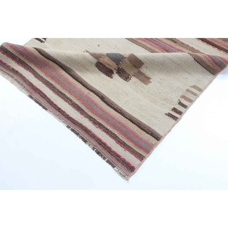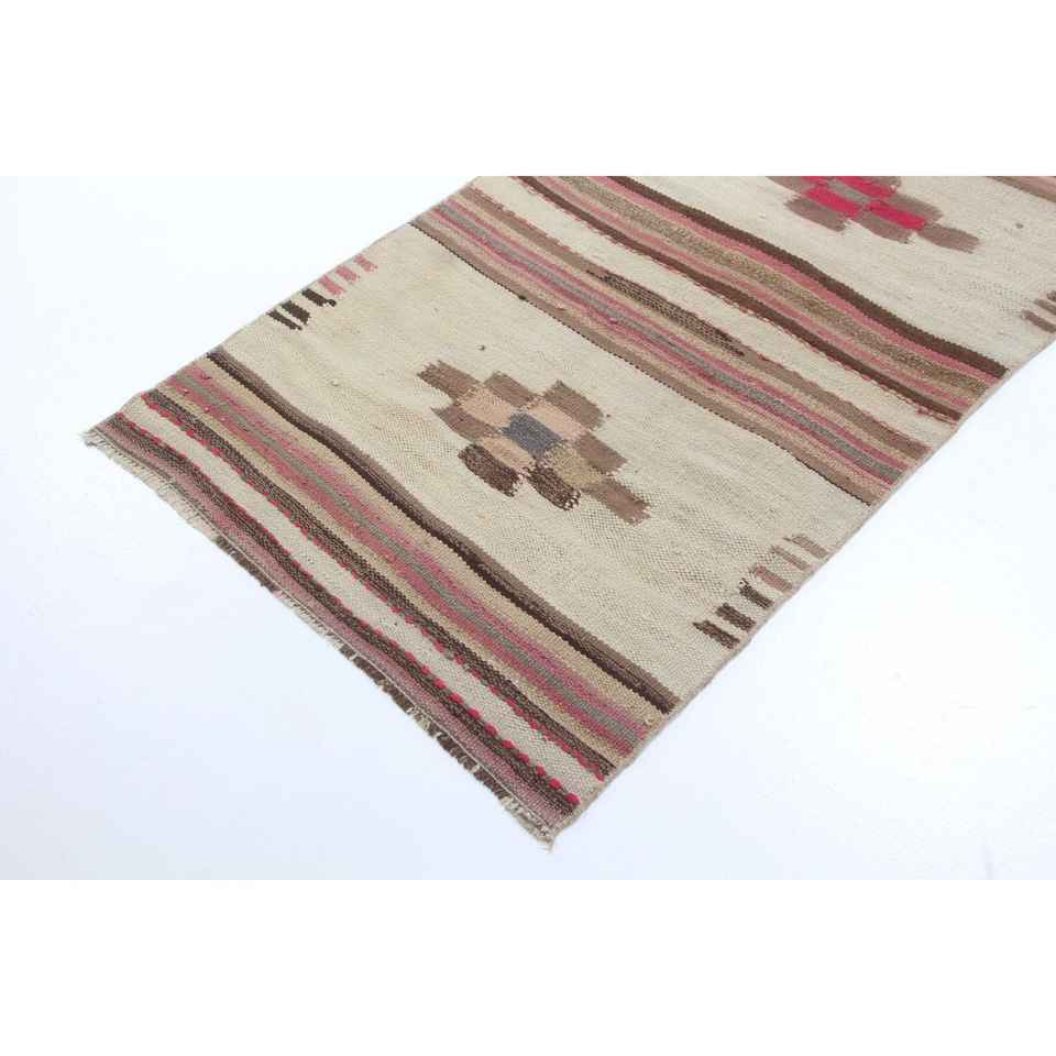 Alfombra Turca, Alfombra Vintage de 2.7x11.4 pies, Alfombra con Bordes Rojos Marrones