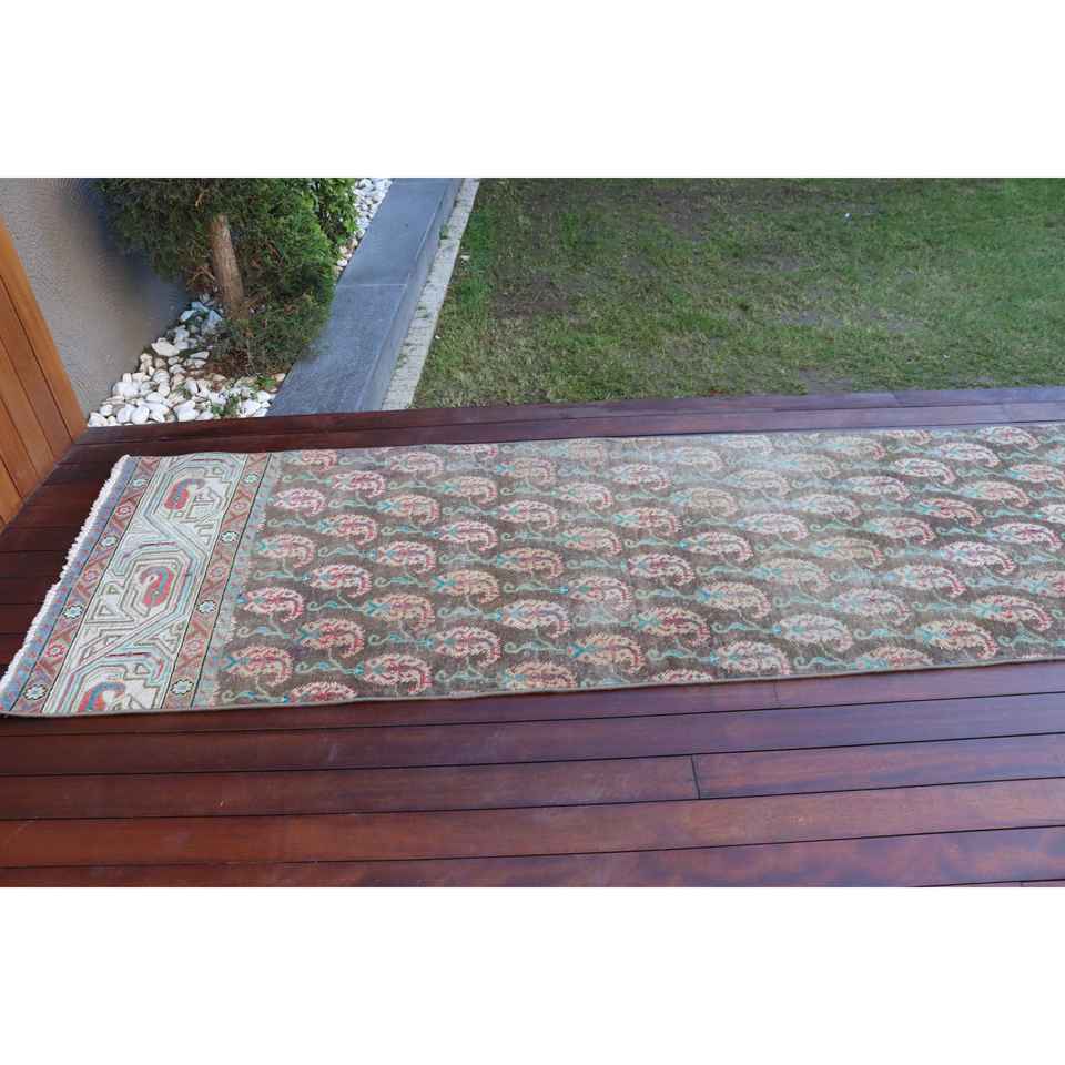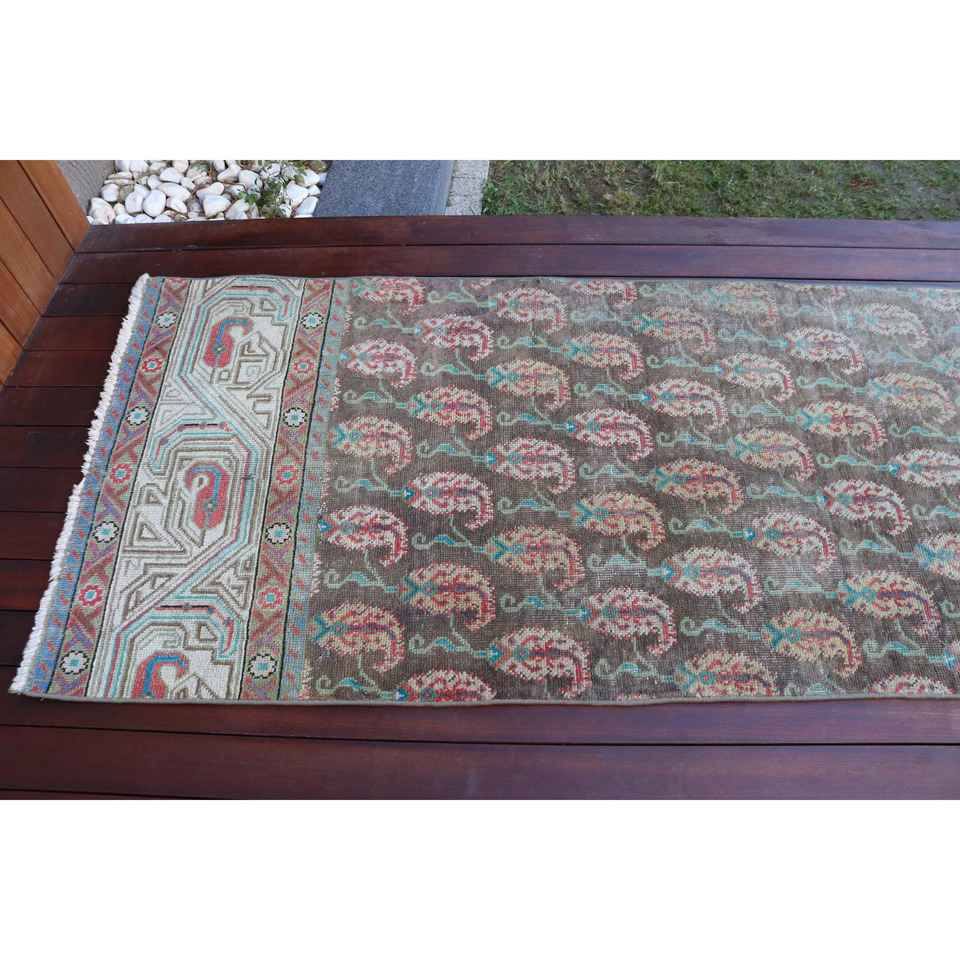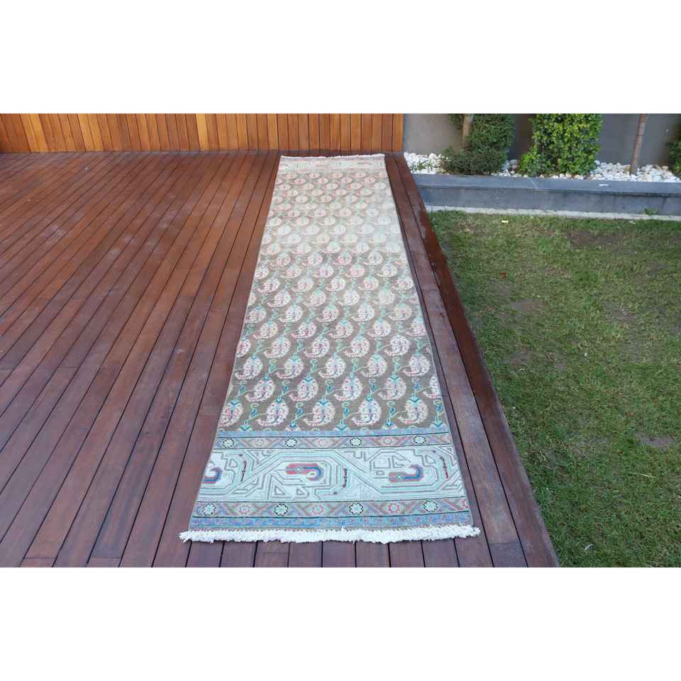 Alfombra Turca, Alfombra Vintage de 2.7x12.8 pies, Alfombra de Lana Azul Ombré