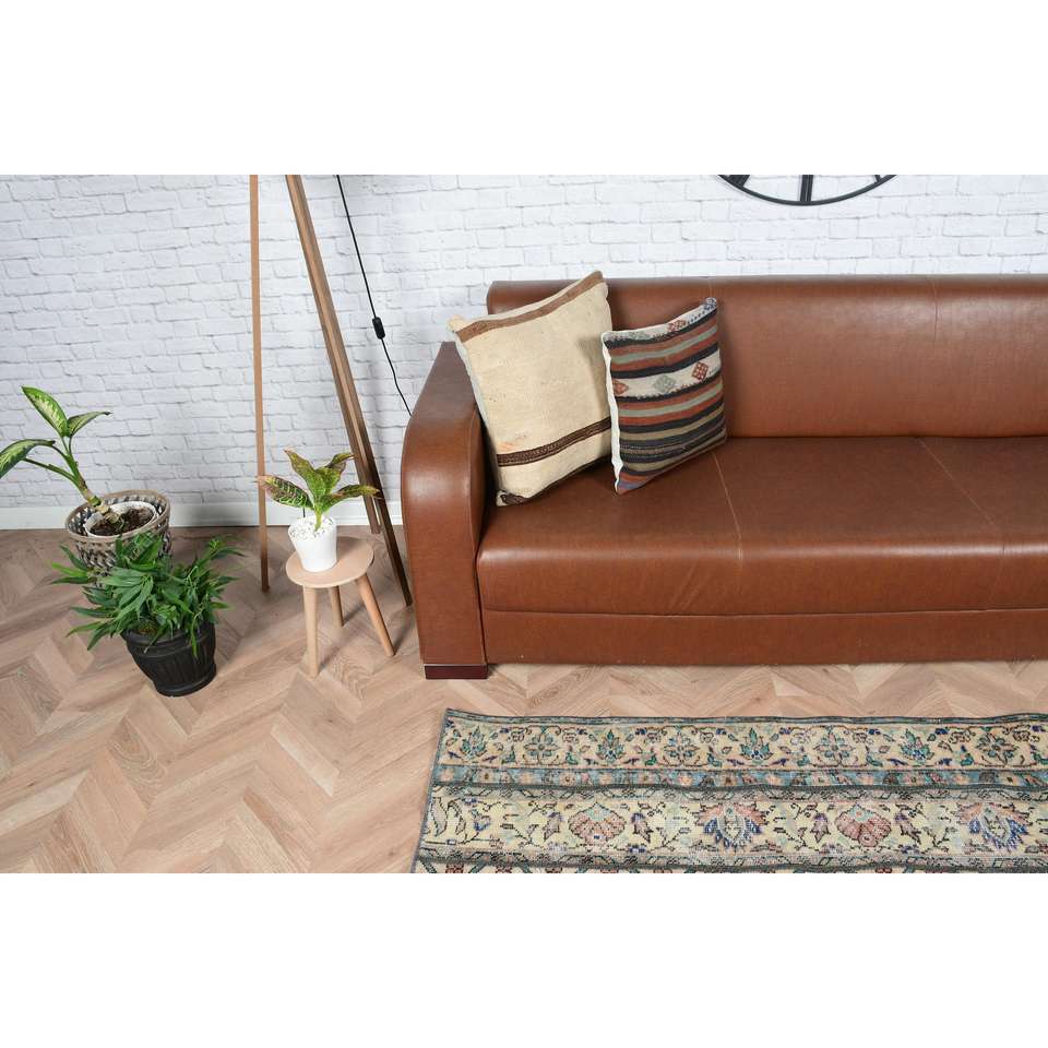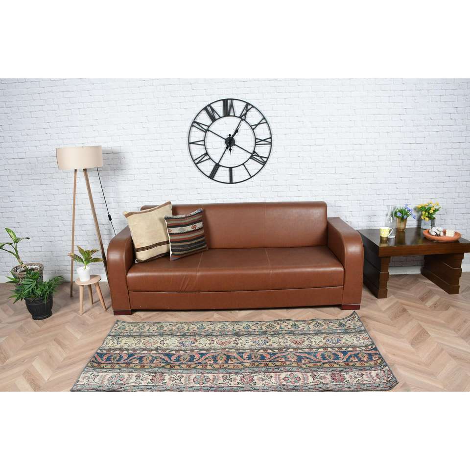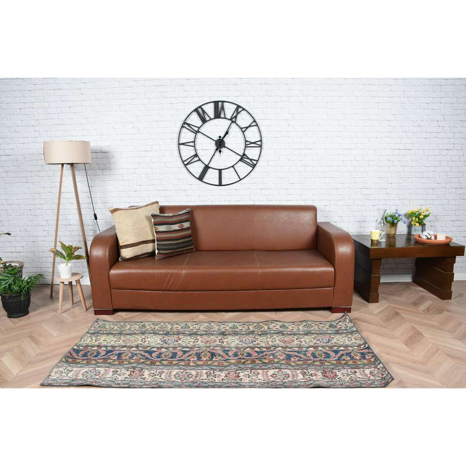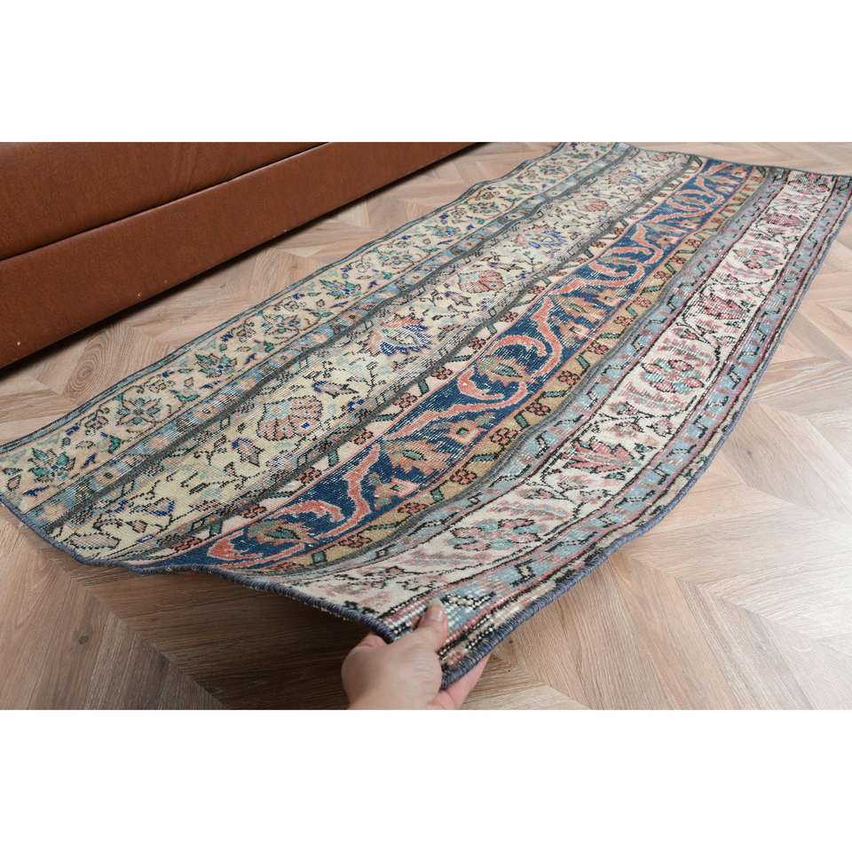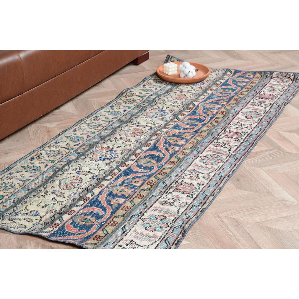 Alfombra Turca, Alfombra Vintage de 2.7x6.1 pies, Alfombra de Lana con Diseño Floral Azul