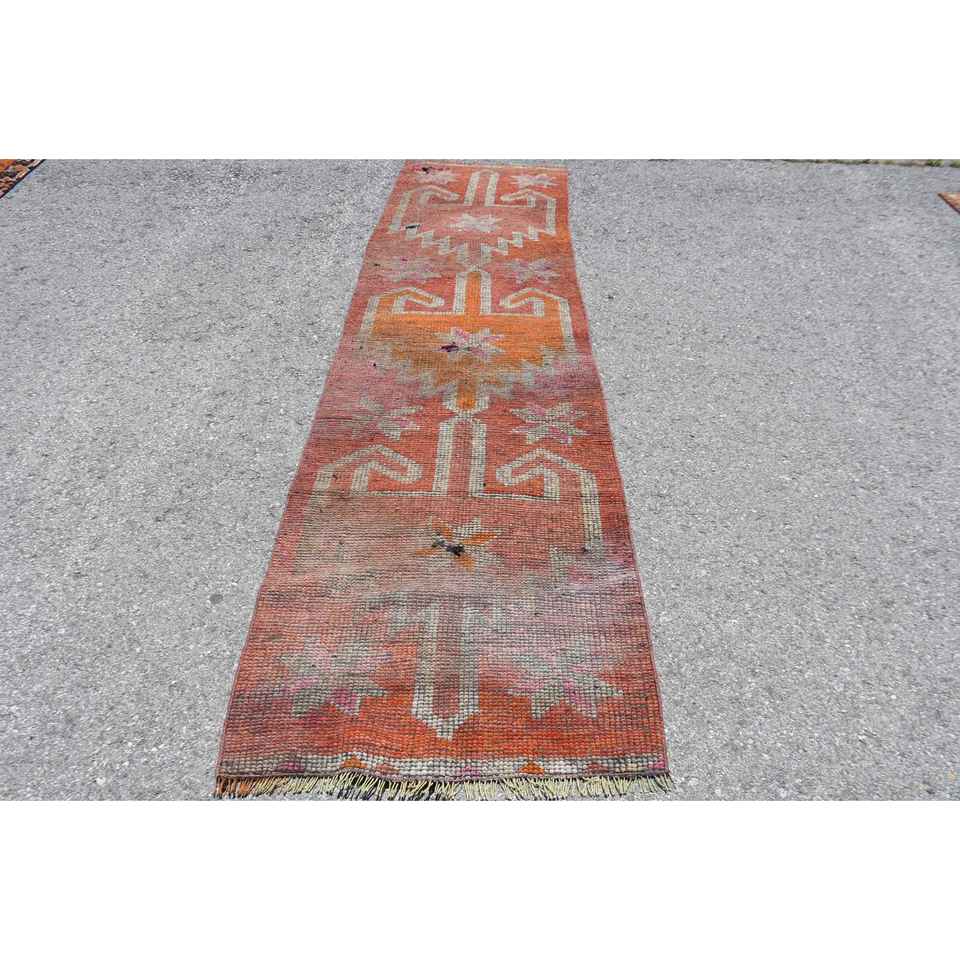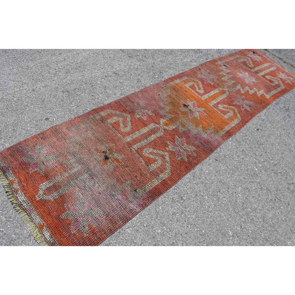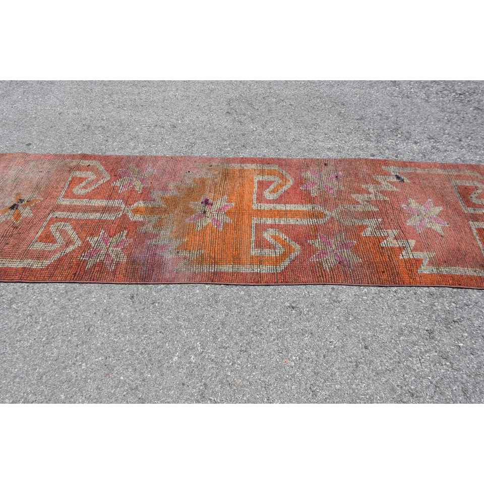 Alfombra Turca, Alfombra Vintage de 2.7x9.9 pies, Alfombra Herki Roja Blanca con Plantas y Árboles