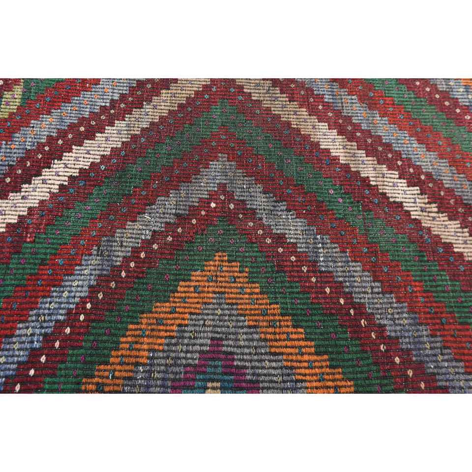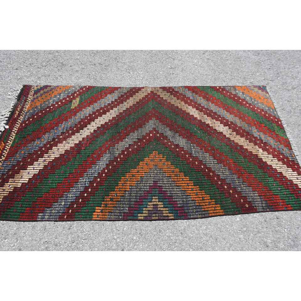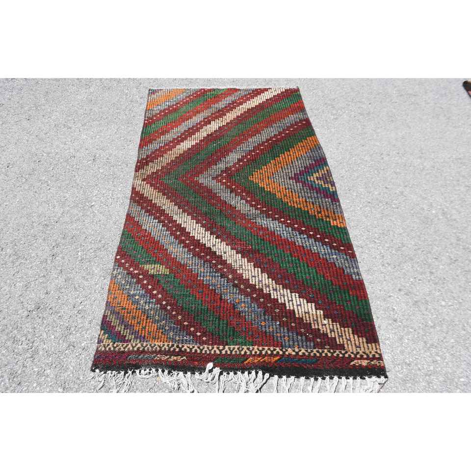 Alfombra Turca, Alfombra Decorativa de 3.2x6.3 pies, Alfombra de Lana Kilim Roja y Verde