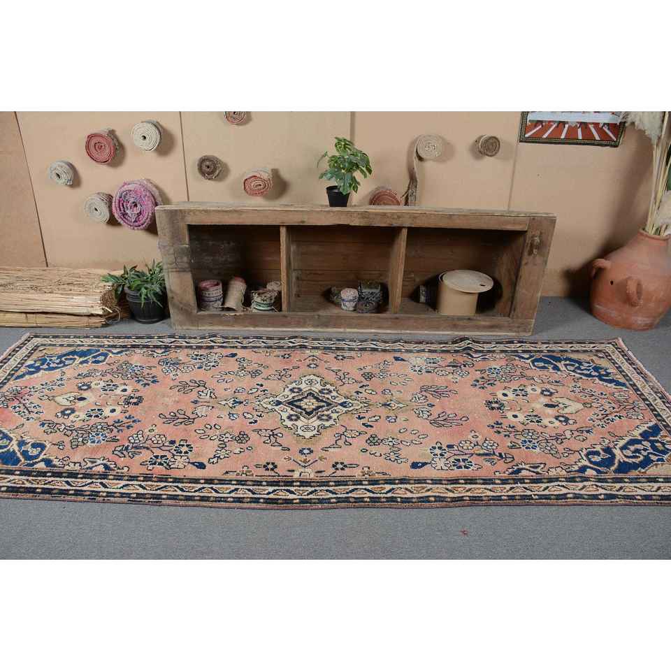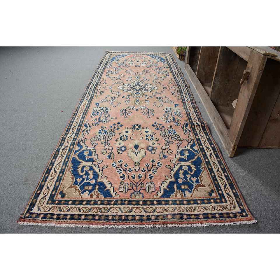 Alfombra Turca de 3.5x10 pies (108x304 cm), Alfombra Persa Azul Vintage