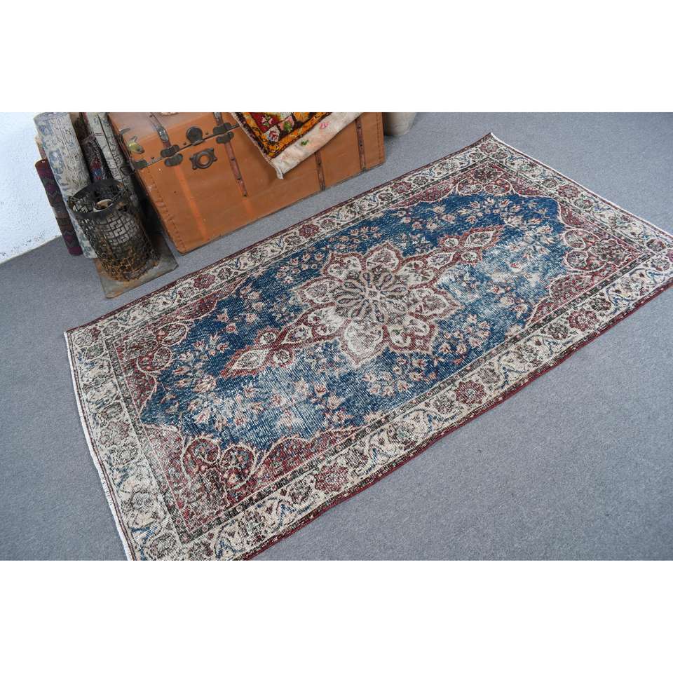 Alfombra Turca, Alfombra Decorativa Vintage de 3.6x6.46 pies, Alfombra Abstracta Azul y Roja