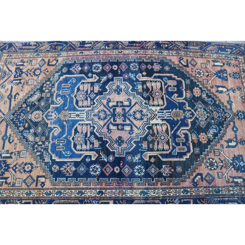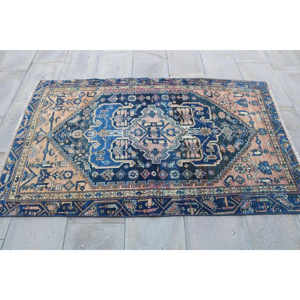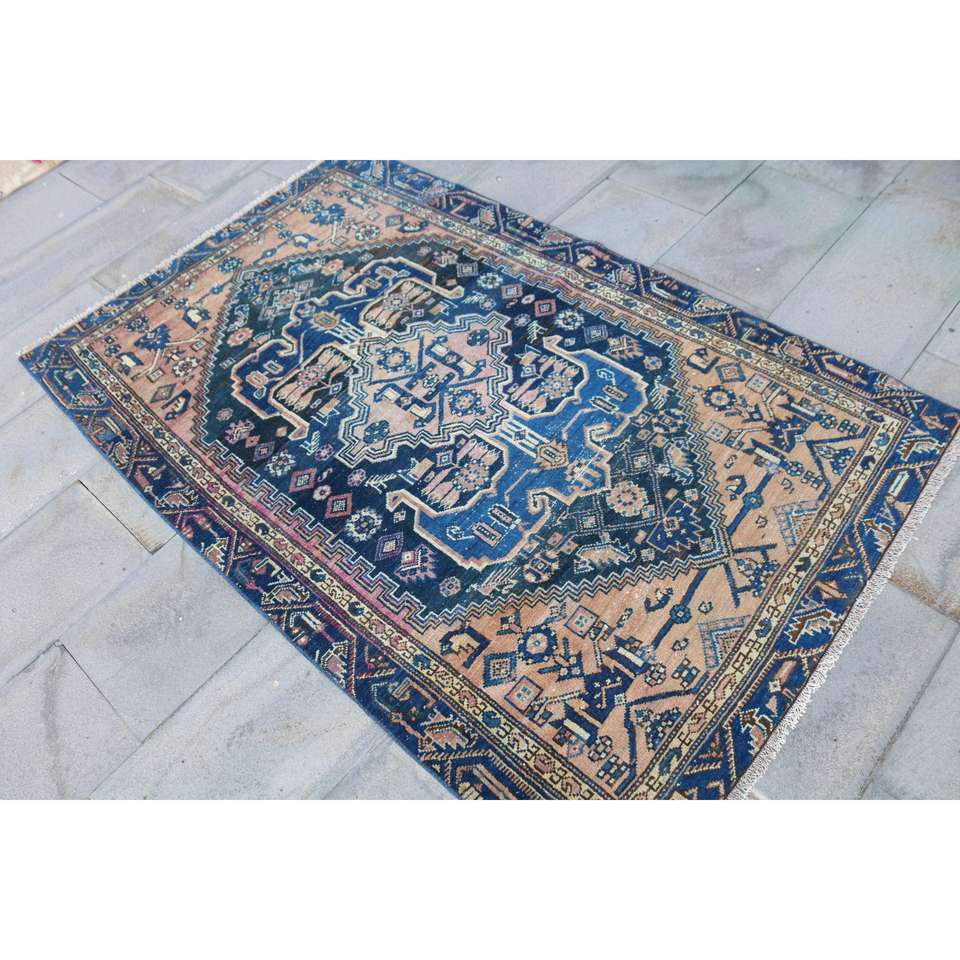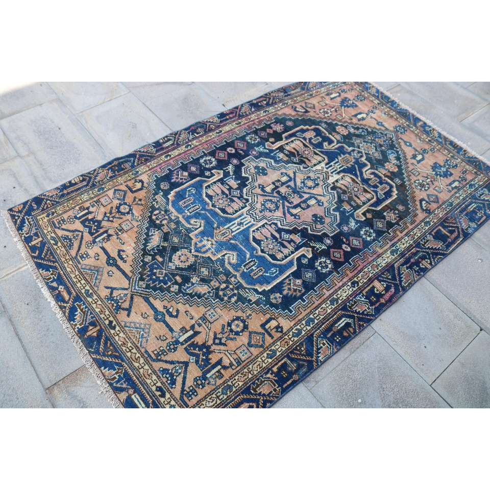 Alfombra Turca, Alfombra Vintage Decorativa de 3.6x6 pies, Alfombra Floral Azul Marrón