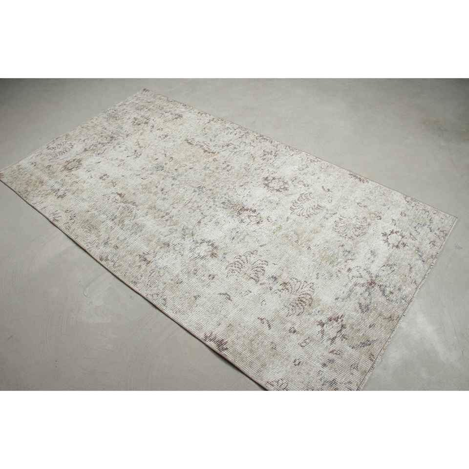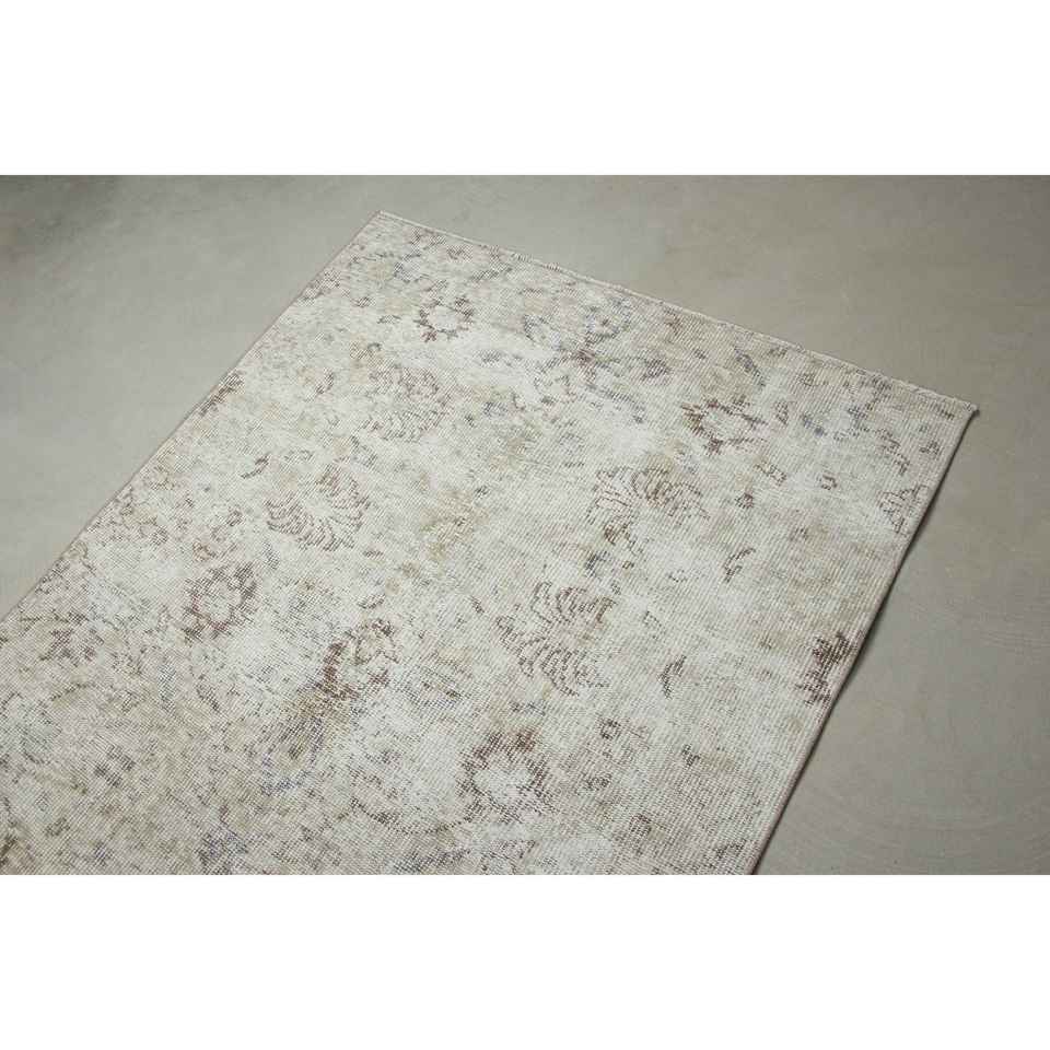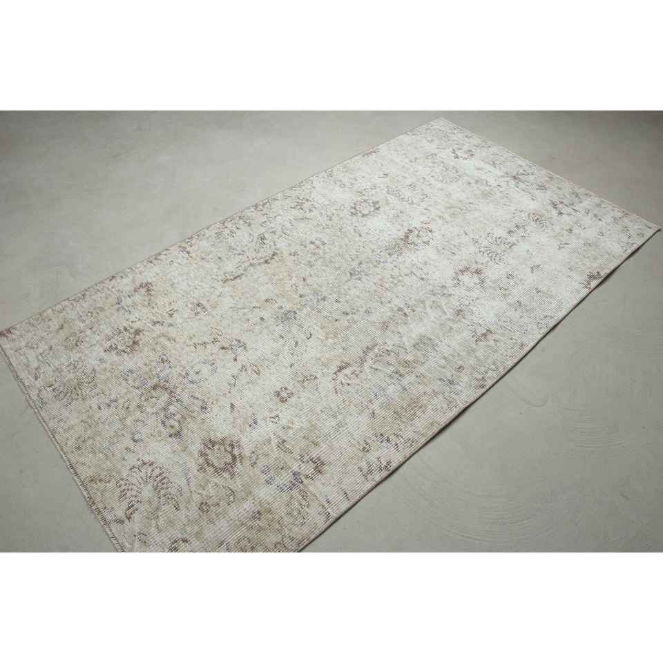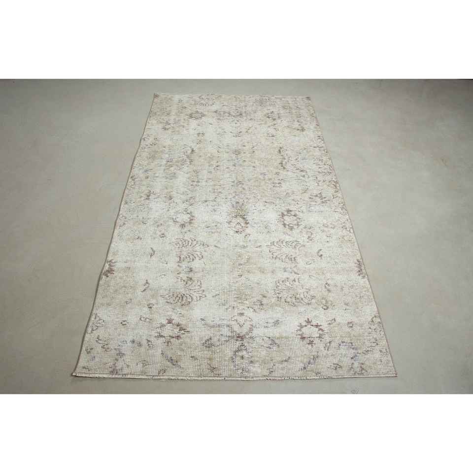 Alfombra Turca de 3,8x7,1 pies, Alfombra Vintage de Lana con Diseño Floral en Blanco y Marrón