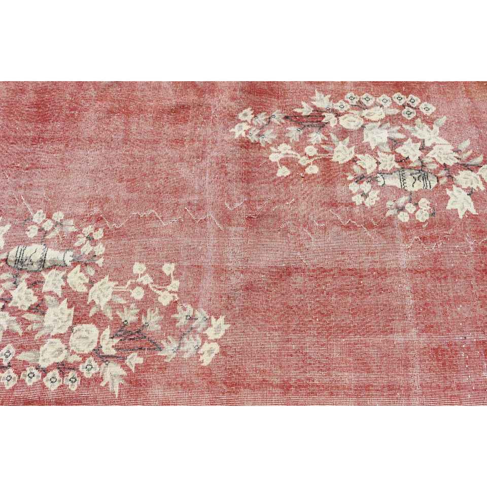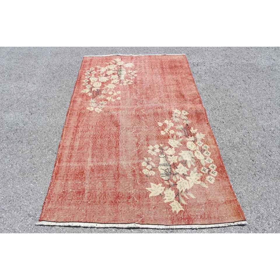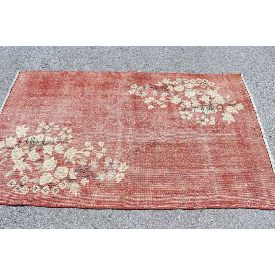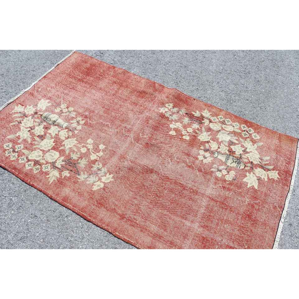 Alfombra Turca de 3.9x6.3 pies (118x193 cm), Alfombra Vintage con Estampado Animal Rojo
