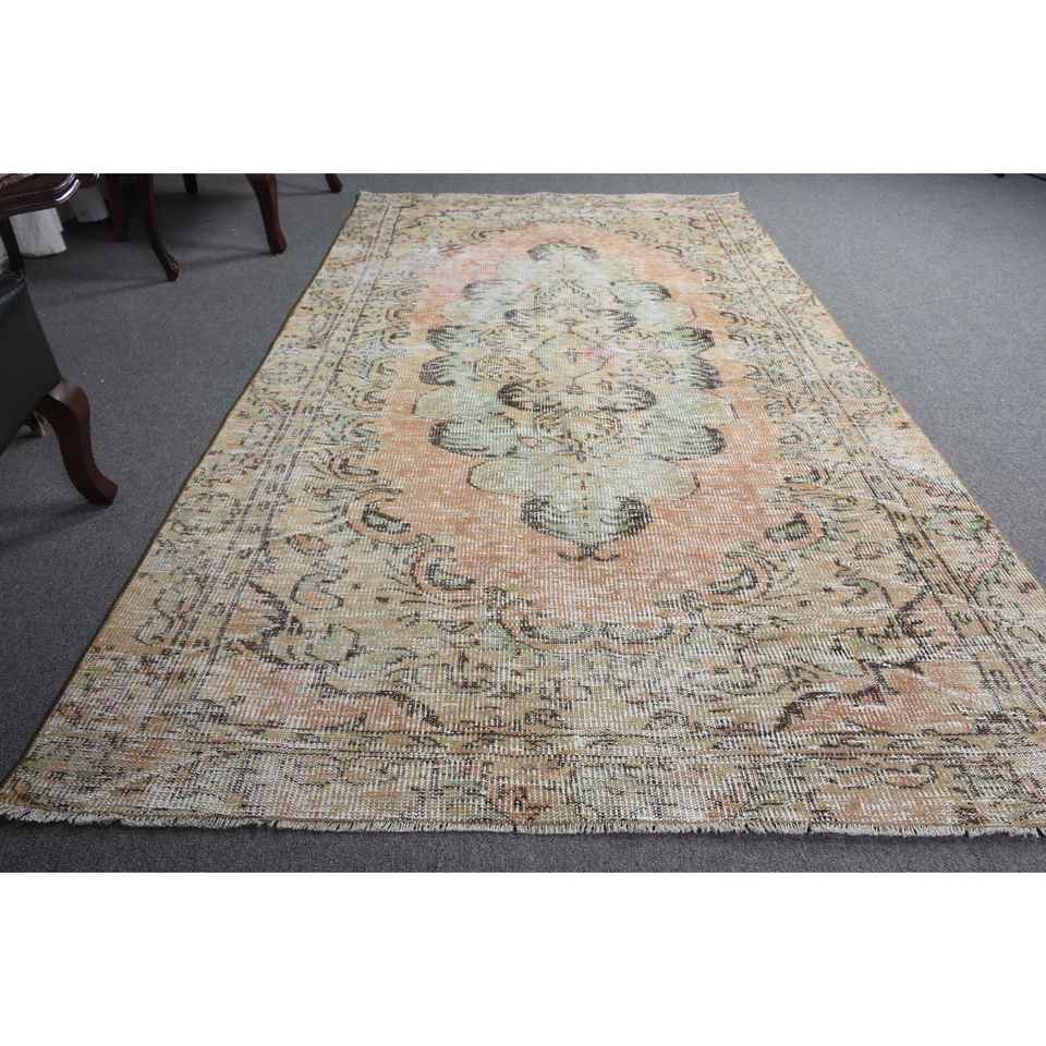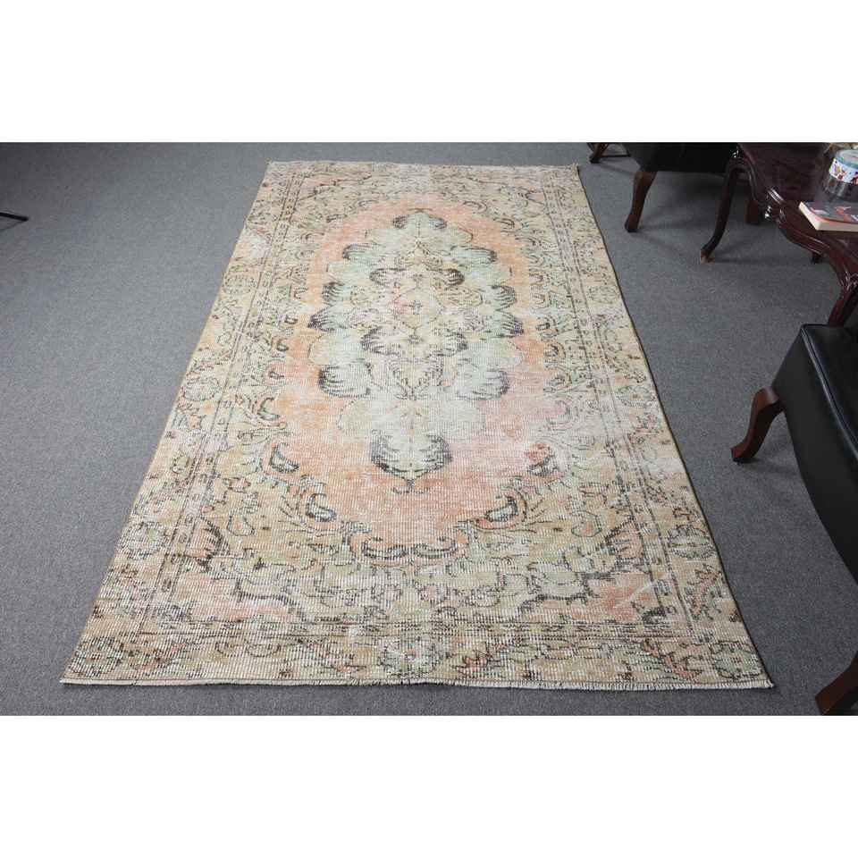 Alfombra Turca, Alfombra Vintage de 4.8x8.3 pies, Alfombra Marrón con Puntos Naranja