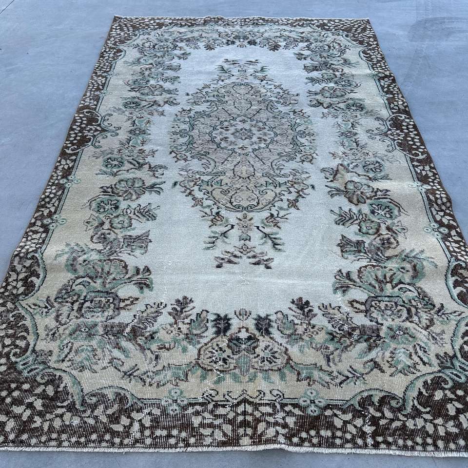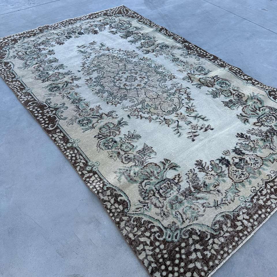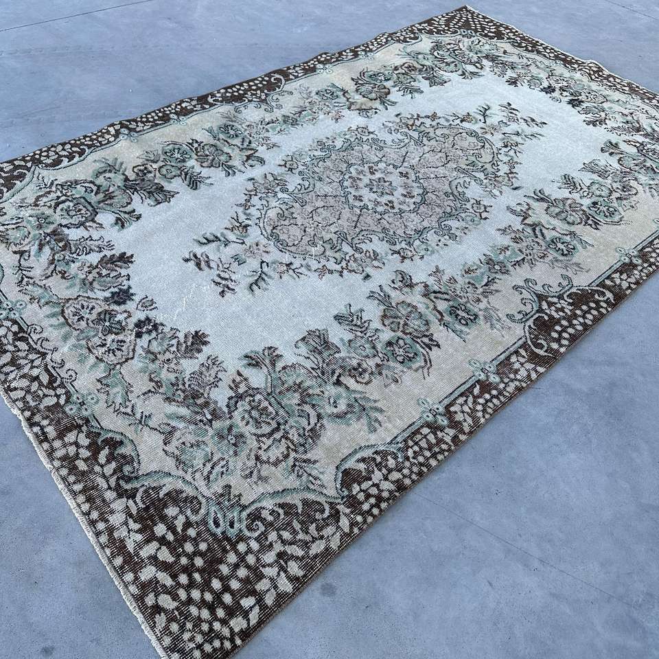 Alfombra Turca de 5.5x8.9 pies (167x270 cm), Alfombra Vintage Marrón con Diseño de Camuflaje