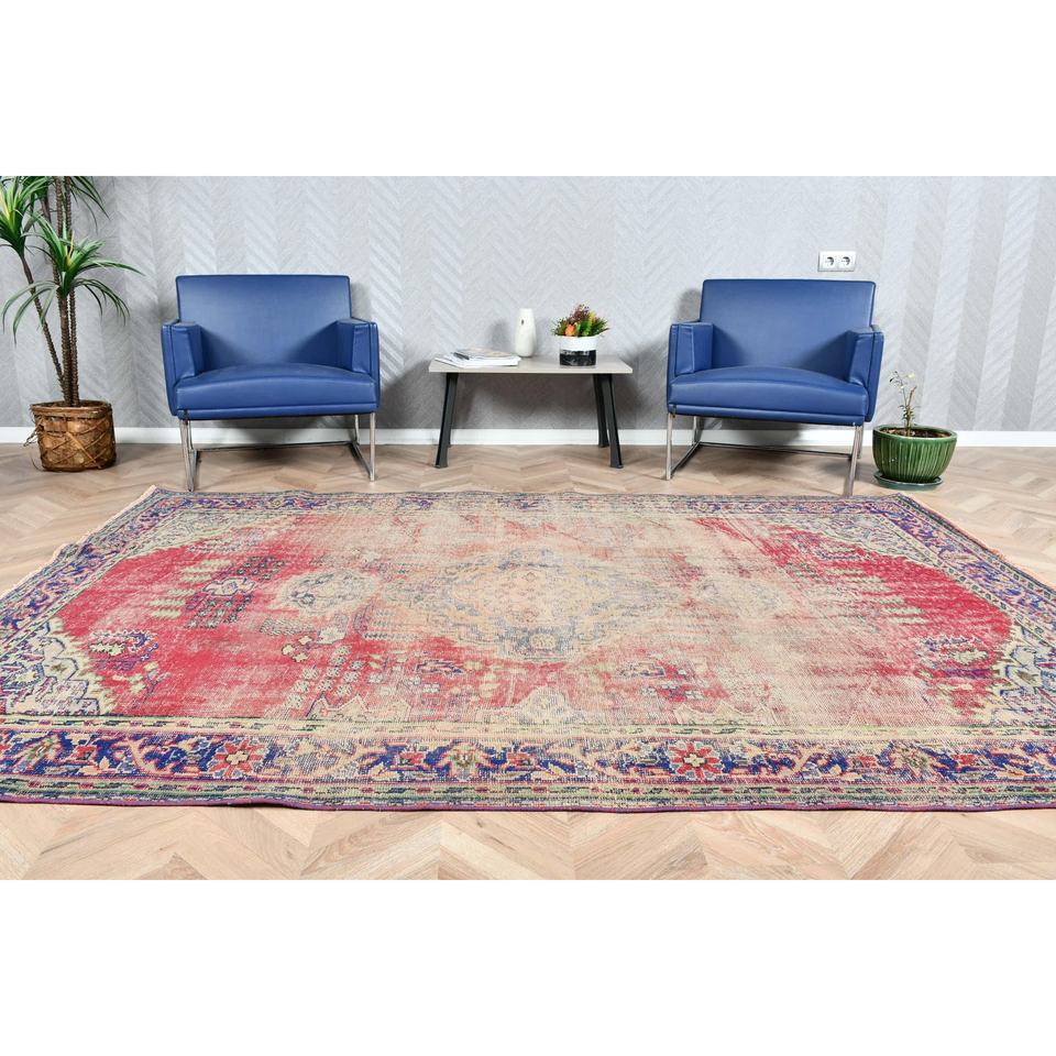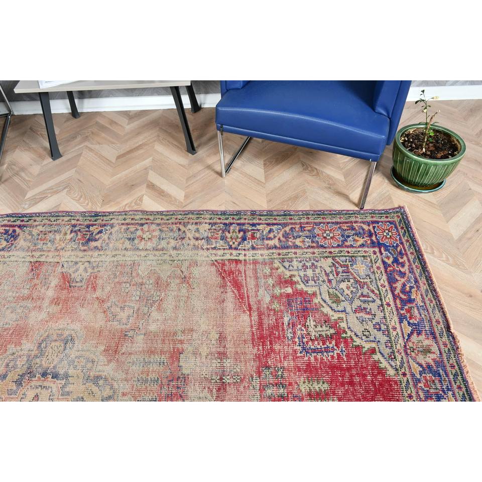 Alfombra Turca 6.3x8.8 pies (192x268 cm), Alfombra Vintage con Plantas y Árboles Rojos