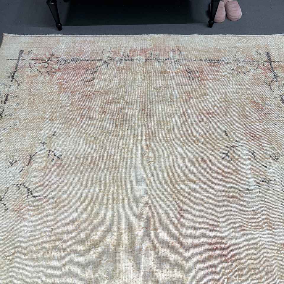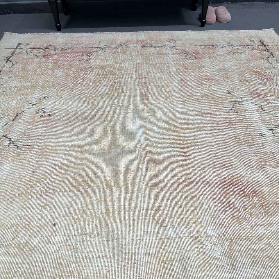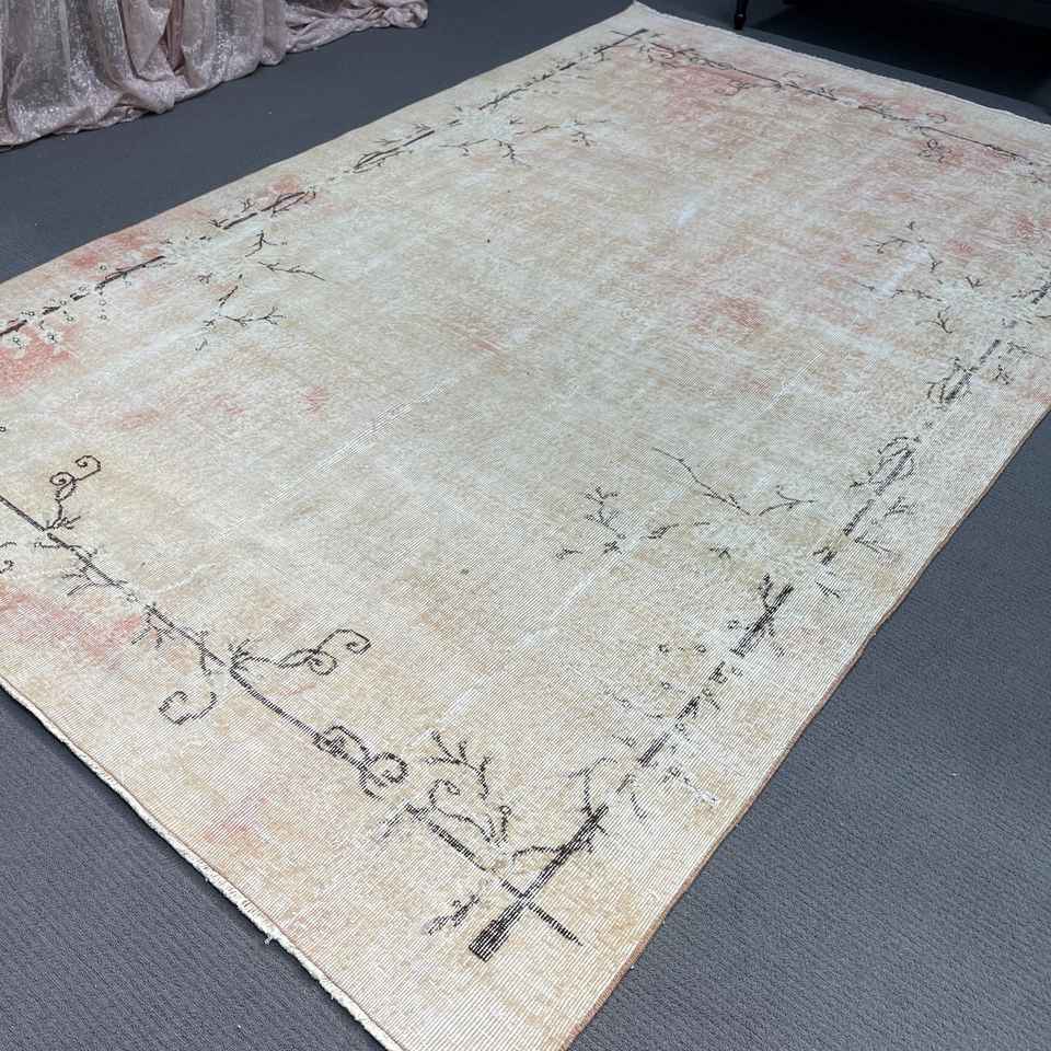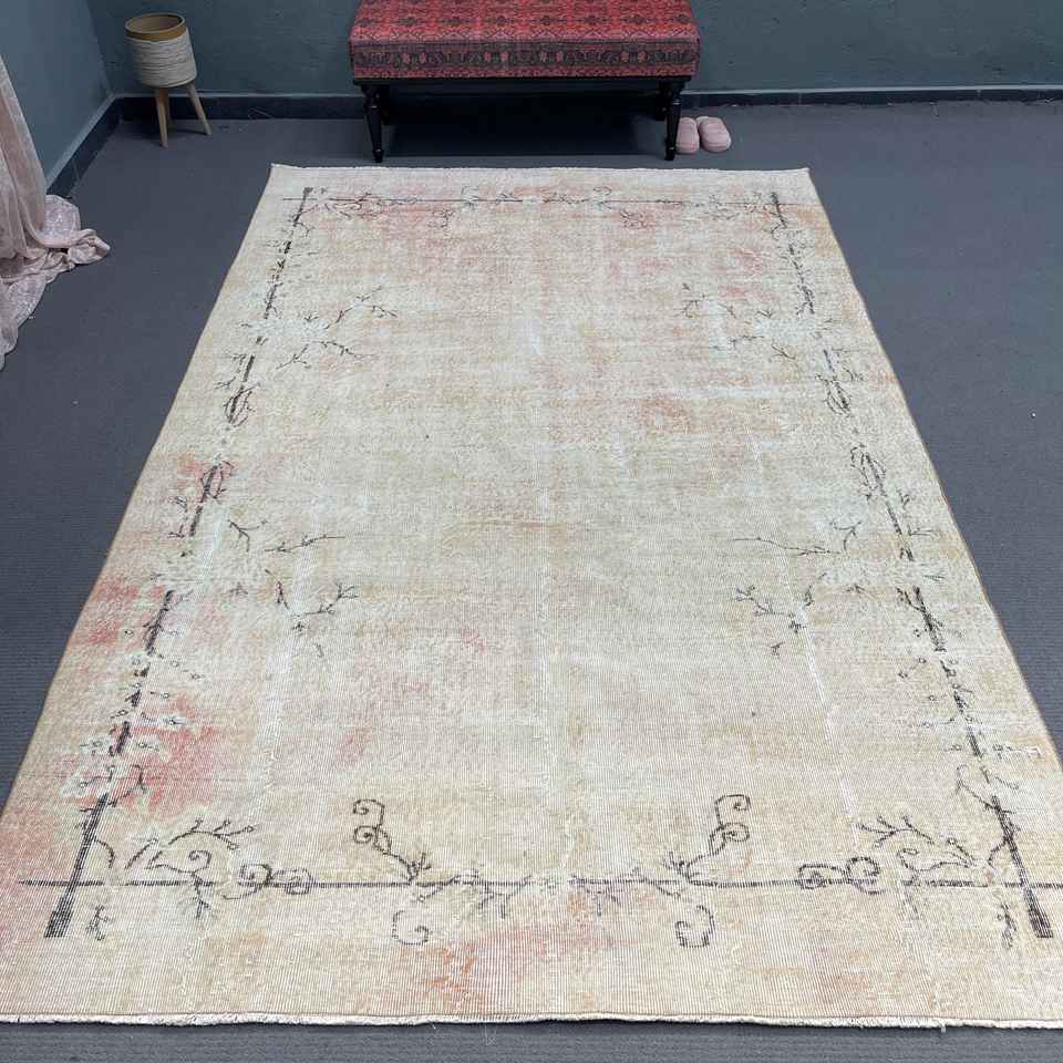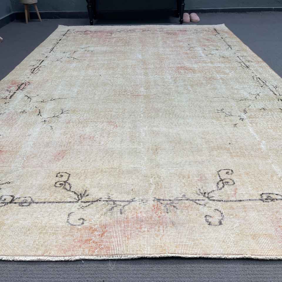 Alfombra Turca, Alfombra Grande de 6.5x10.1 pies, Alfombra de Lana Blanca y Roja