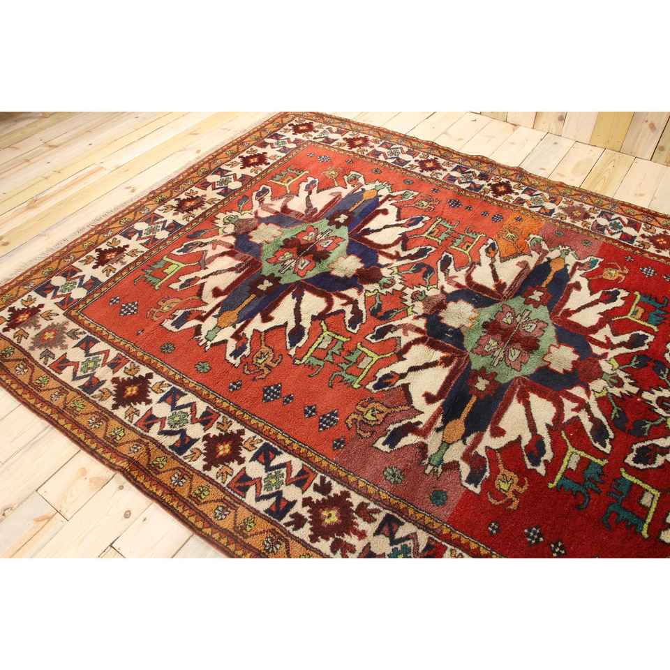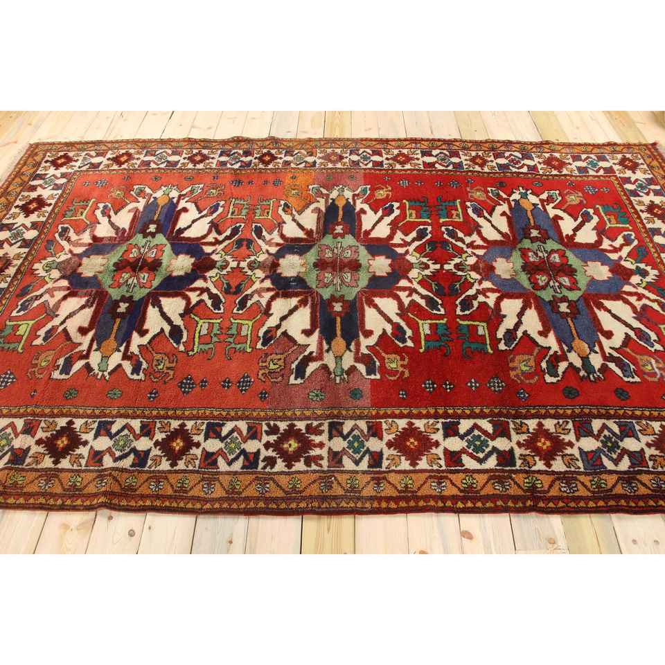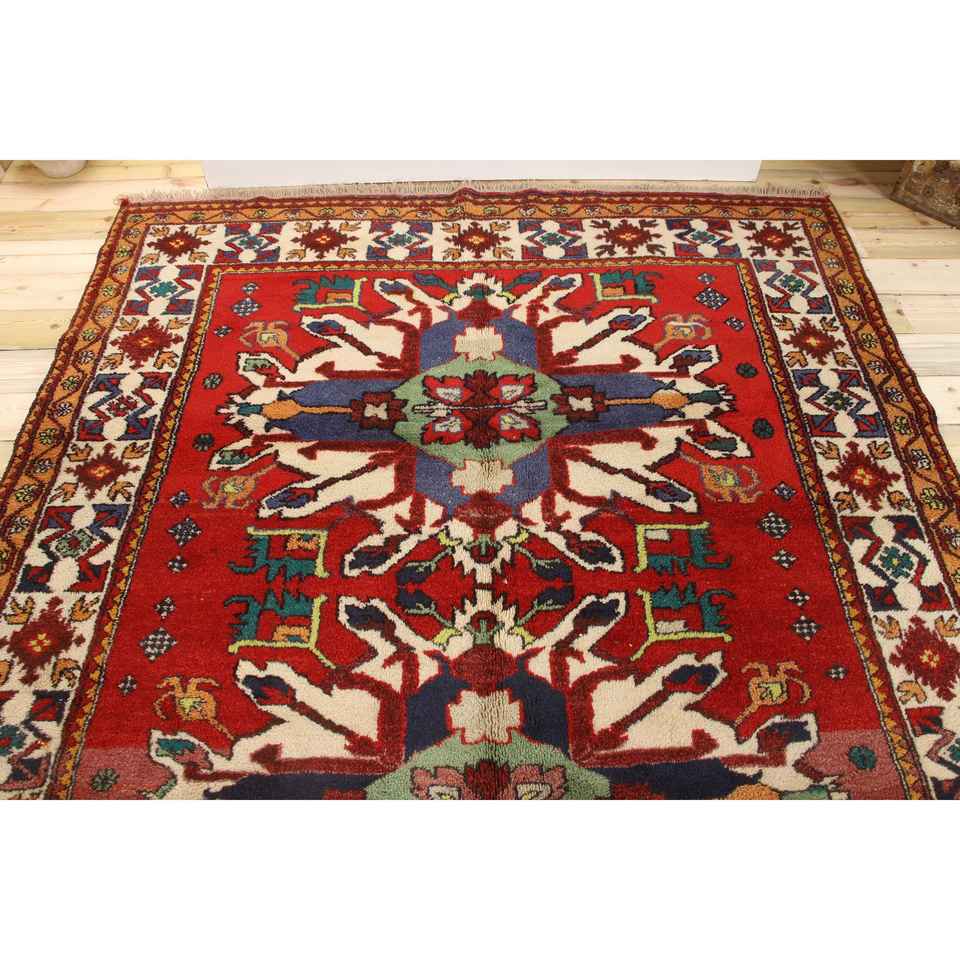 Alfombra Turca, Alfombra Vintage de 6.5x10.8 pies, Alfombra de Lana con Diseño Floral Rojo