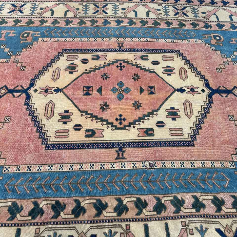 Alfombra Turca, Alfombra Extra Grande de 9.3x10.5 pies, Alfombra de Lana Azul y Rosa