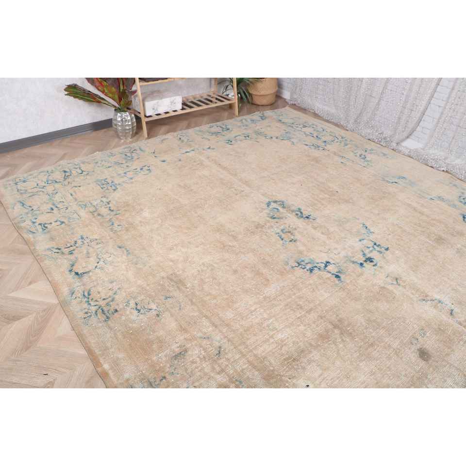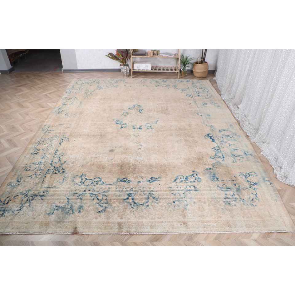Alfombra Turca, Alfombra Extra Grande de 9.4x12.3 pies, Alfombra Vintage de Lana Azul Abstracta