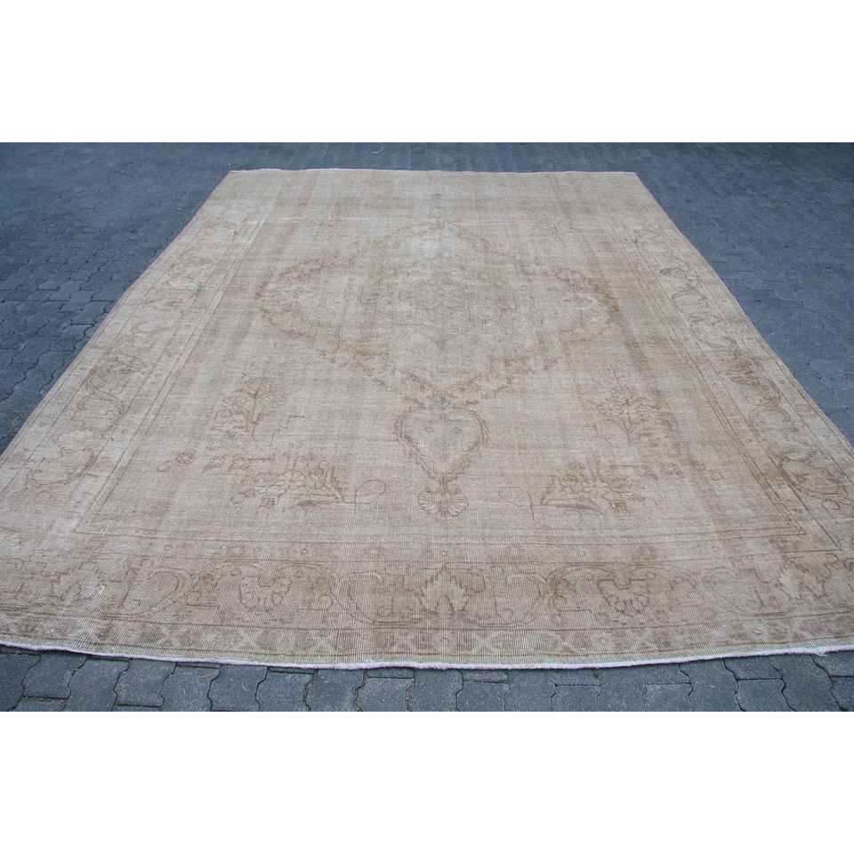 Alfombra Turca de 9.6x12.3 pies (292x376 cm), Alfombra Vintage Marrón Sólida
