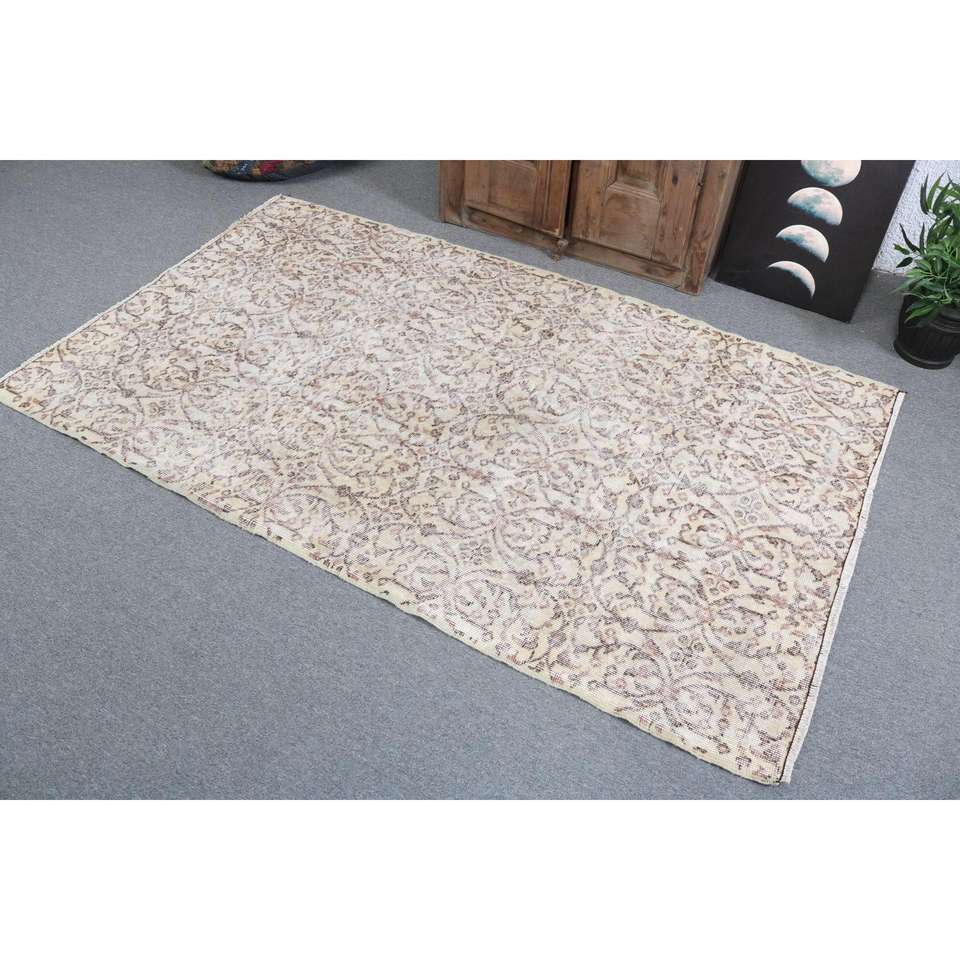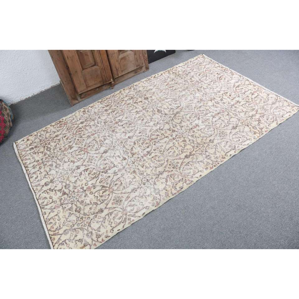 Alfombra Turca, Alfombra de 3.9x6.6 pies, Alfombra con diseño de plantas y árboles blancos