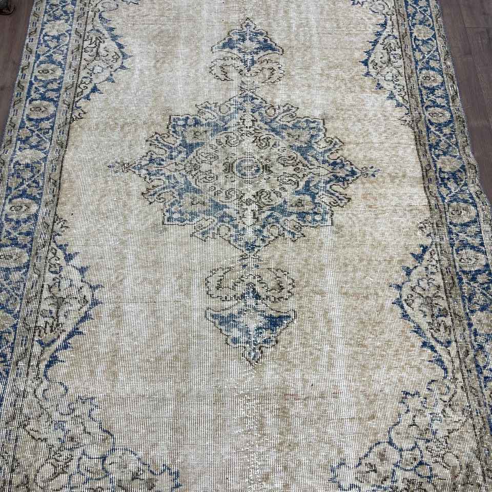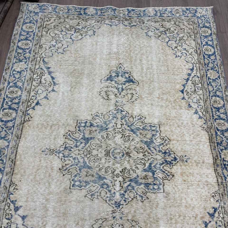 Alfombra Turca, Alfombra de 5.1x7.8 pies, Alfombra Azul Ikat