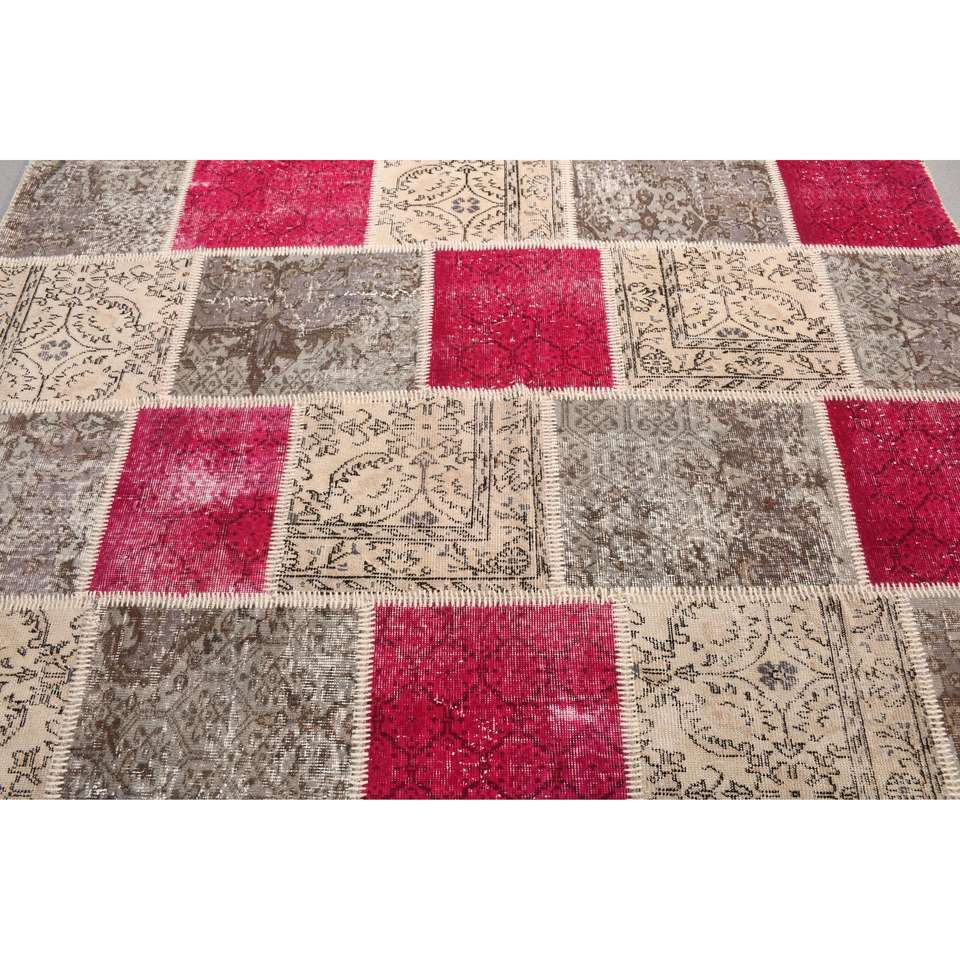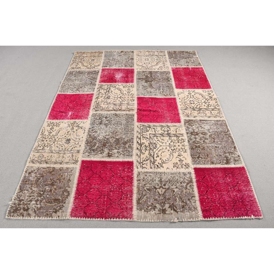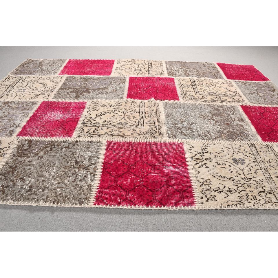 Alfombra Turca, Alfombra de 5,2x7,2 pies, Alfombra a Rayas Rojas