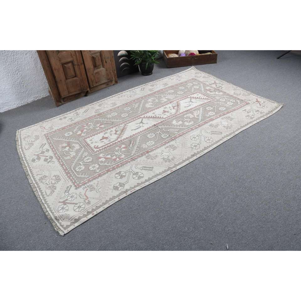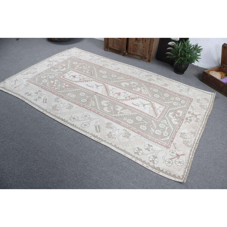 Alfombra Turca, Alfombra de 5x8 pies, Alfombra con diseño de plantas y árboles blancos