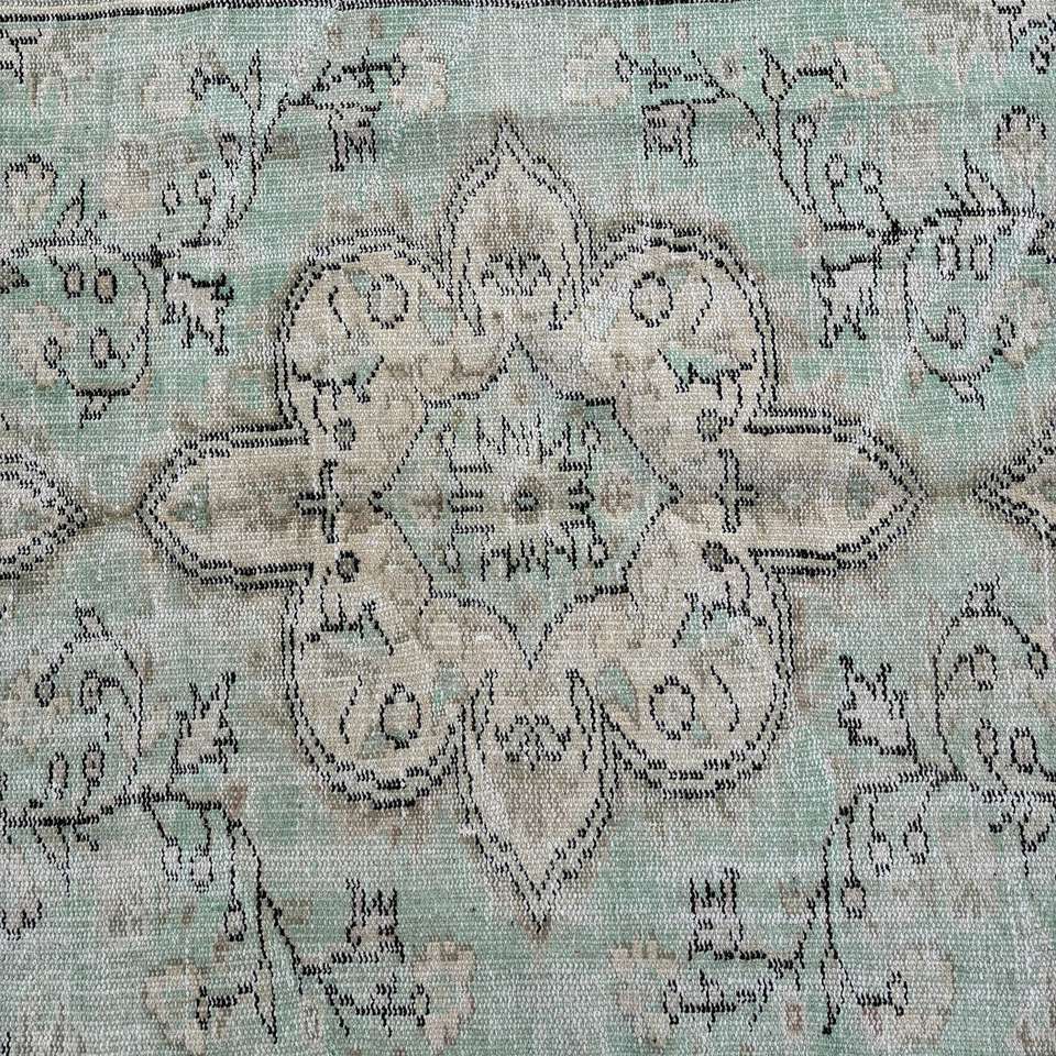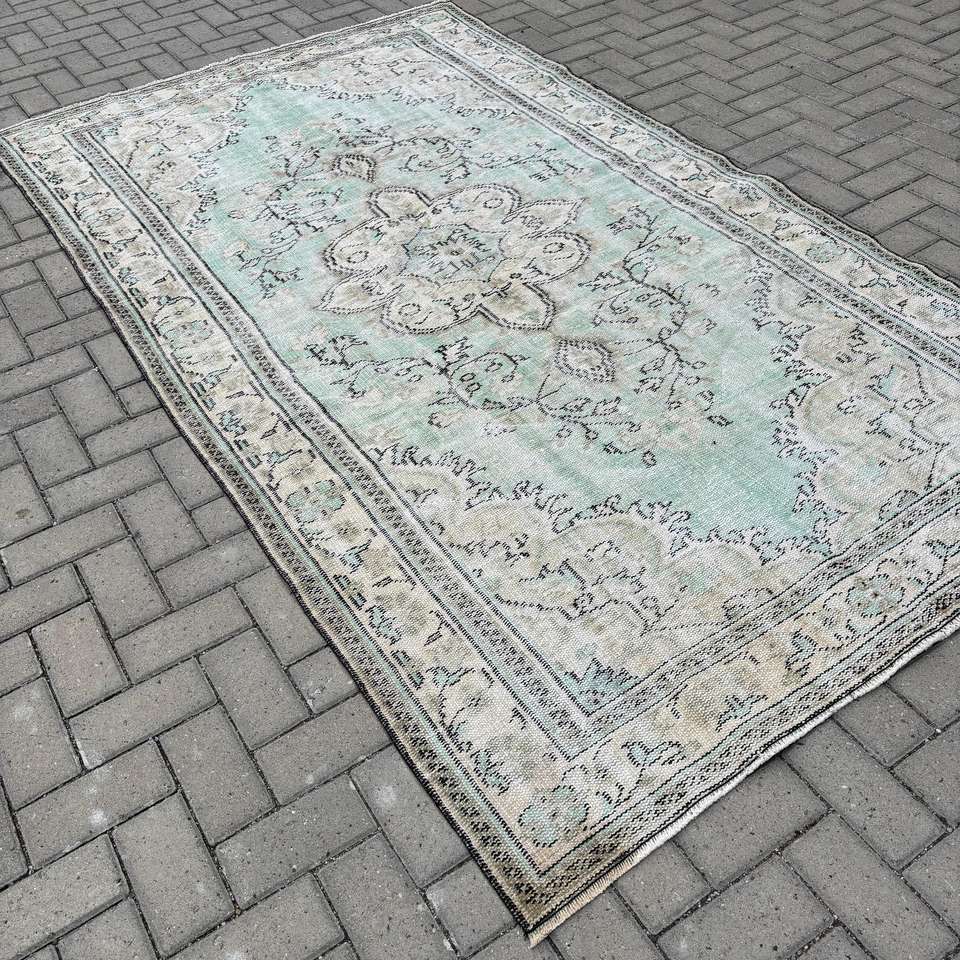 Alfombra Turca, Alfombra Vintage Grande de 5.1x8.9 pies, Alfombra de Lana con Bordes Azul Gris