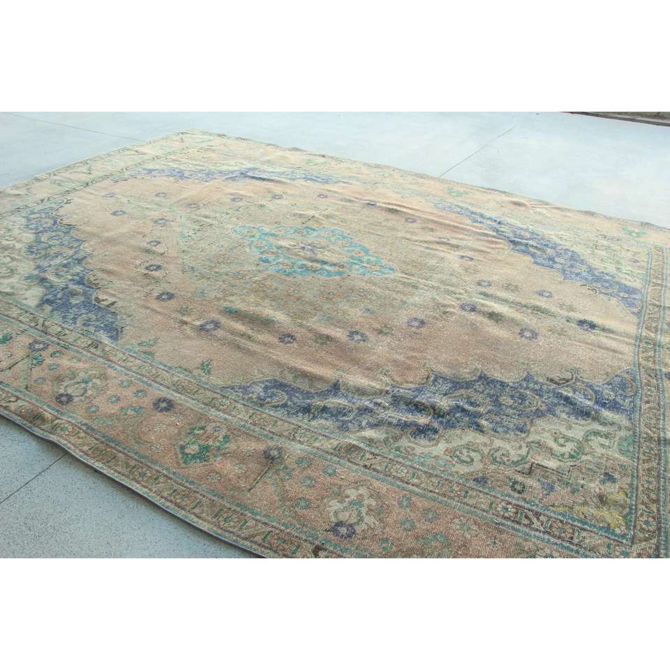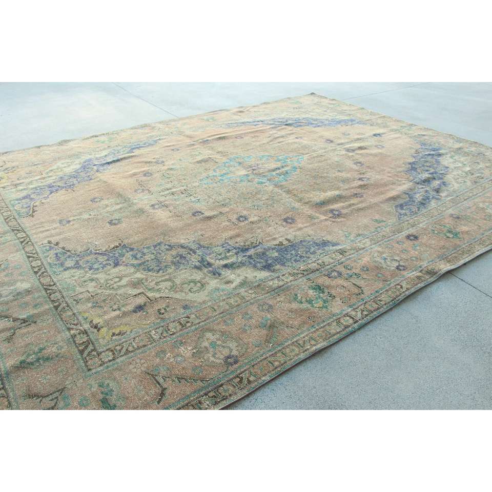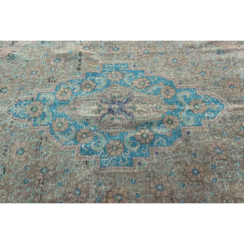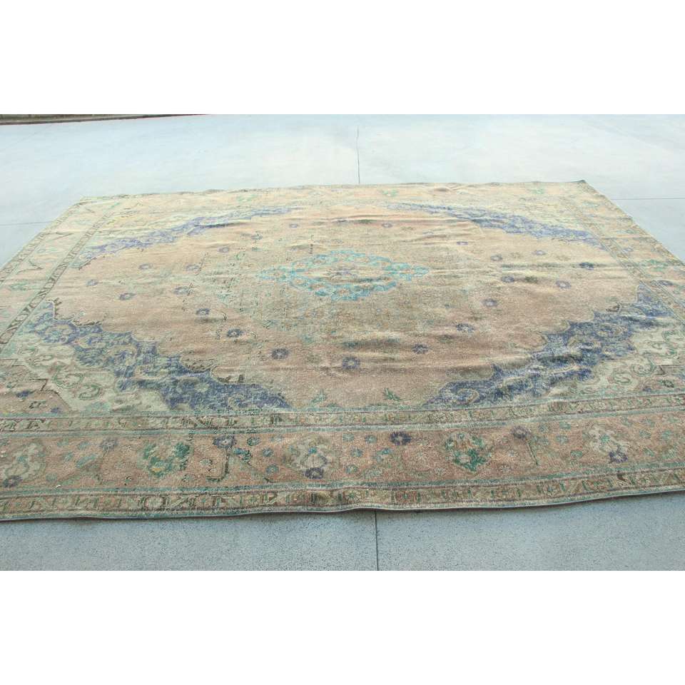 Alfombra Turca, Alfombra Extra Grande de 12.6x9.7 pies, Alfombra con Diseño de Plantas y Árboles Azules
