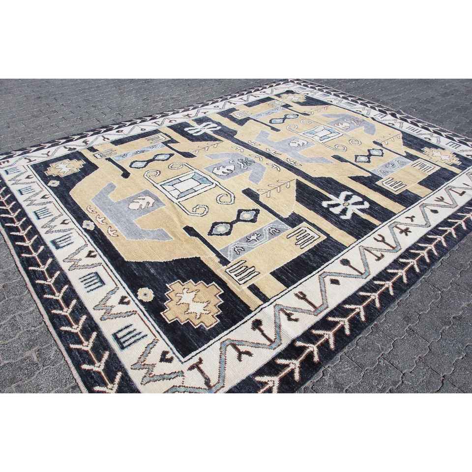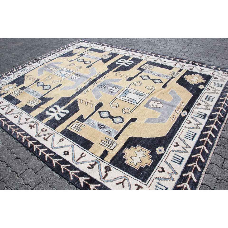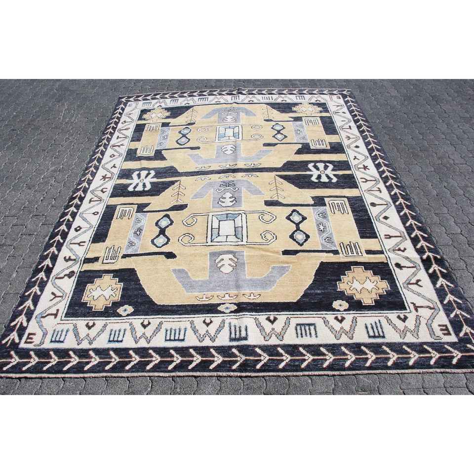 Alfombra Turca, Alfombra Extra Grande de 8.6x11 pies, Alfombra Azul con Diseño de Patchwork