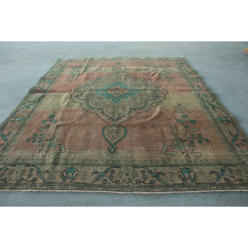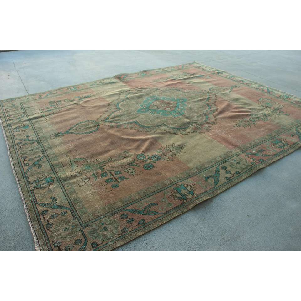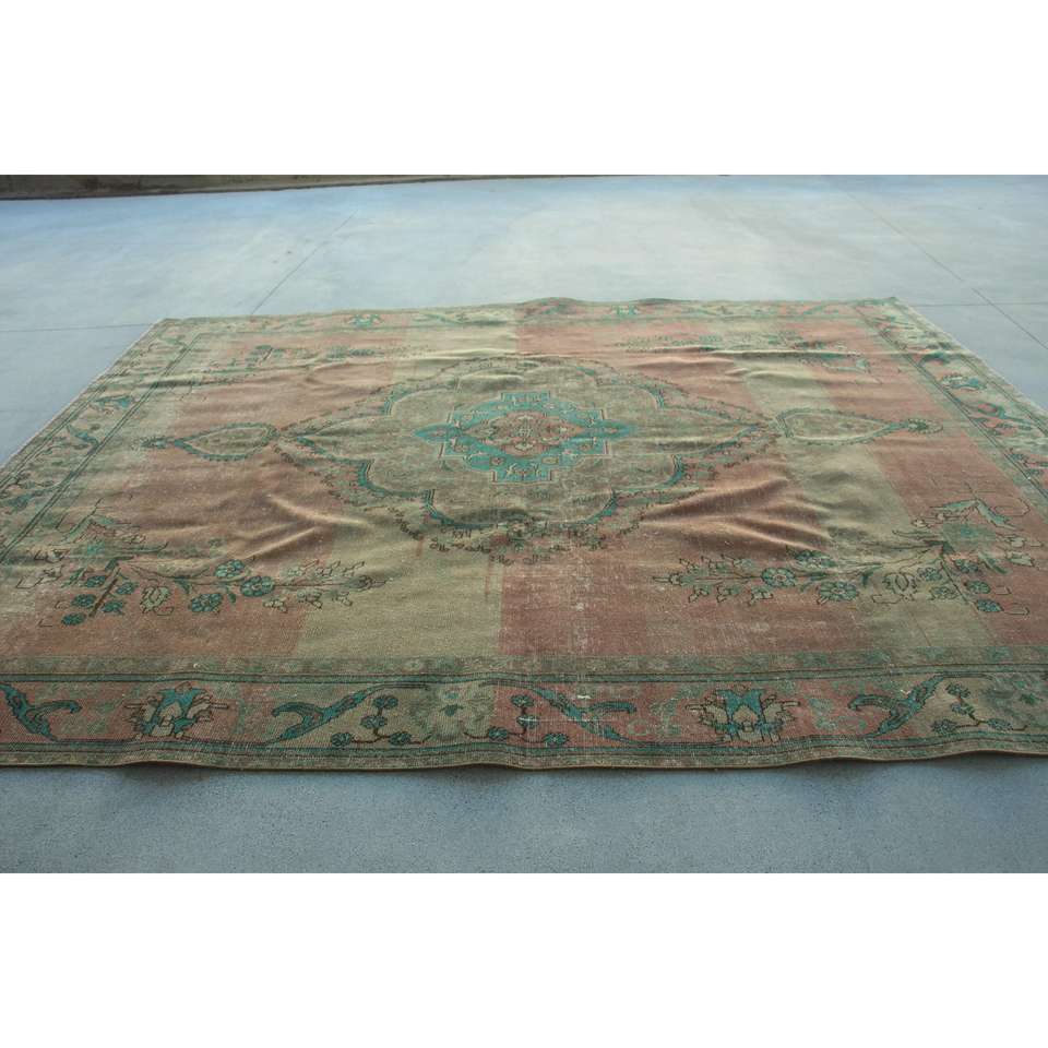Alfombra Turca, Alfombra Vintage Extra Grande de 9,8x12,3 pies, Alfombra Marroquí de Lana Marrón y Azul