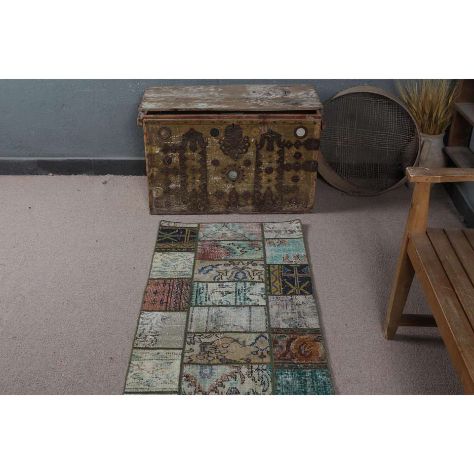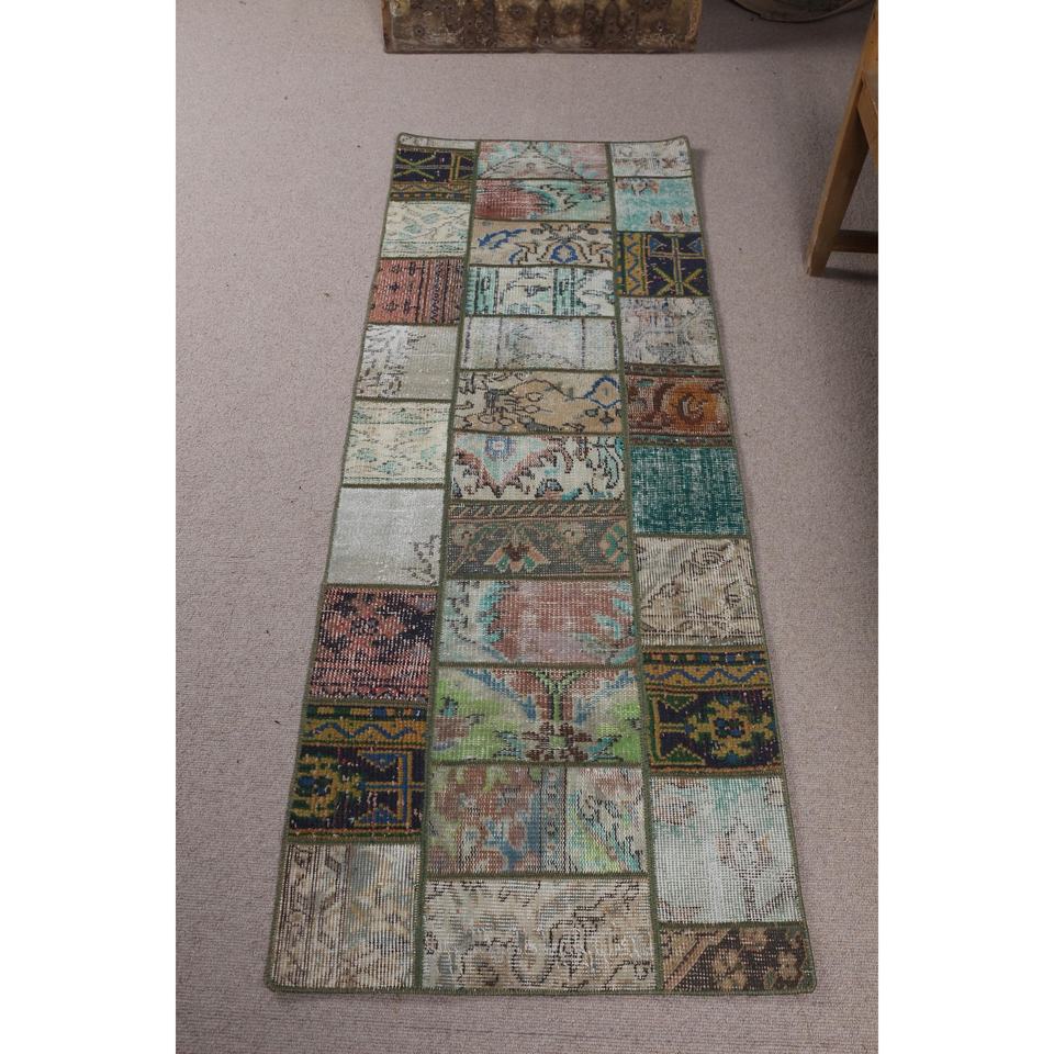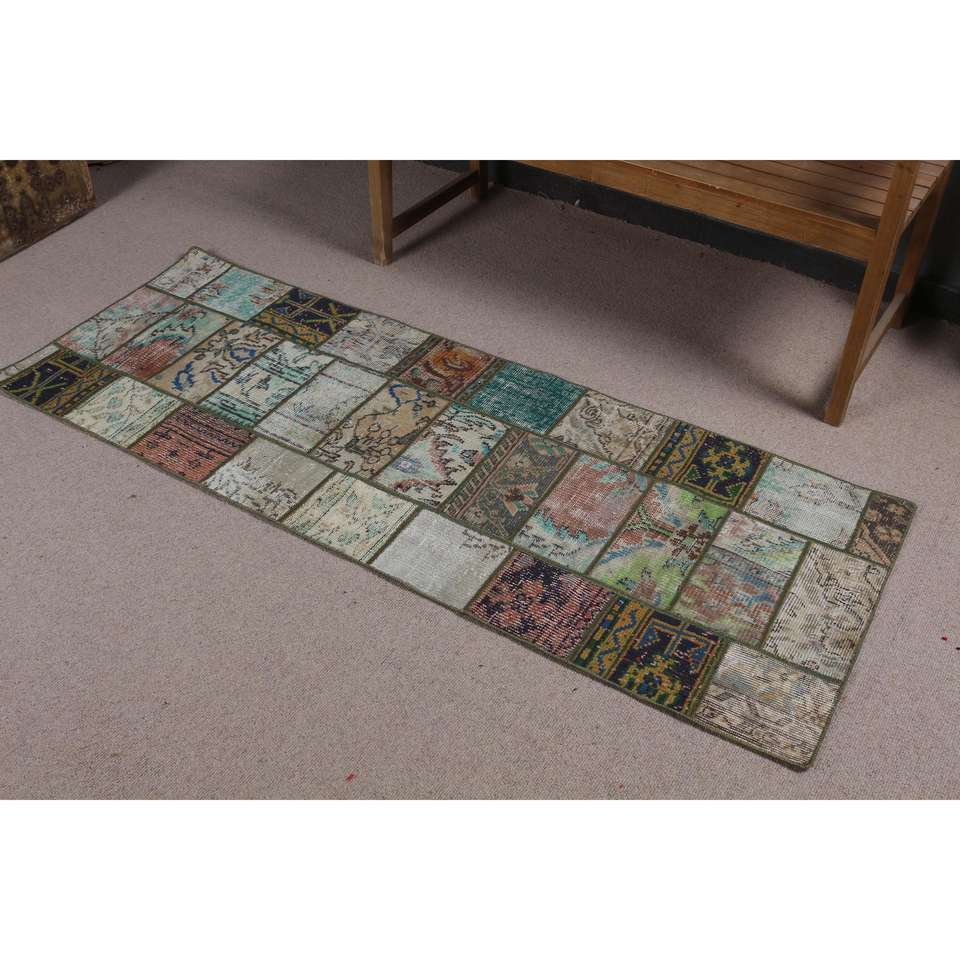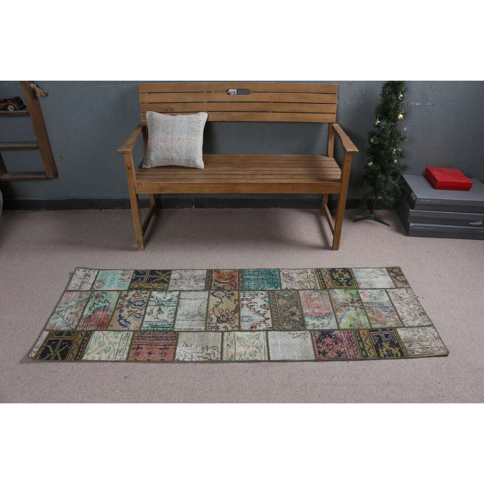 Alfombra Turca, Alfombra de Pasillo de 2.2x6.1 pies, Alfombra Oriental Azul de Lana