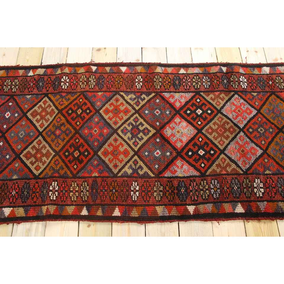 Alfombra Turca, Alfombra de Pasillo de 2.8x11.6 pies, Alfombra Oriental Roja