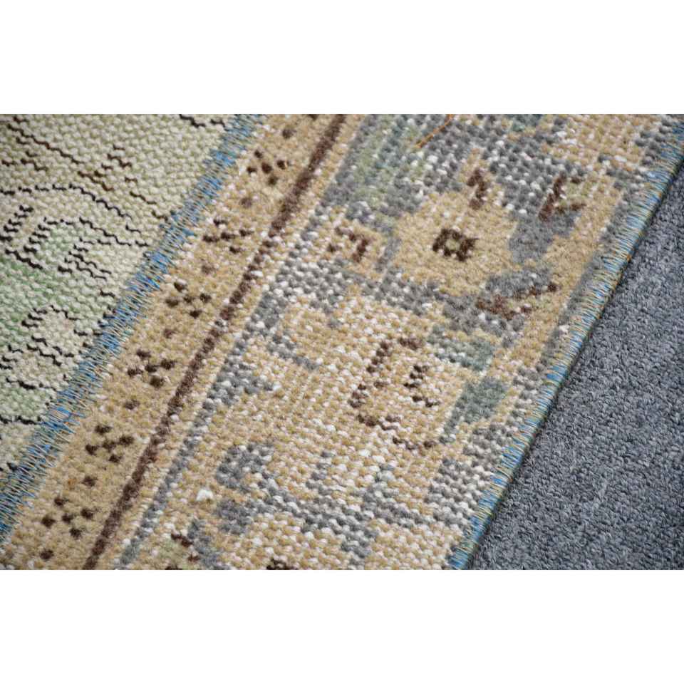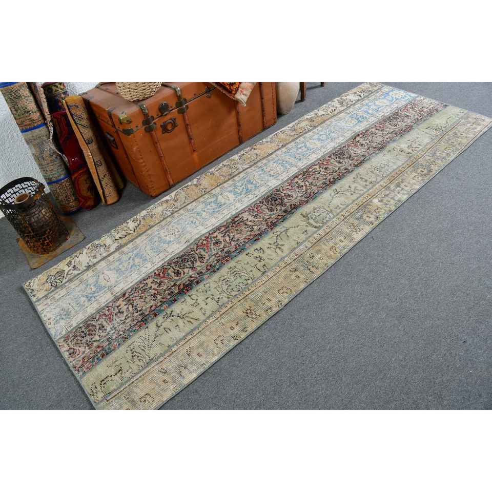 Alfombra Turca, Alfombra de Pasillo de 3.1x8.6 pies, Alfombra Vintage, Alfombra de Lana Azul Abstracta