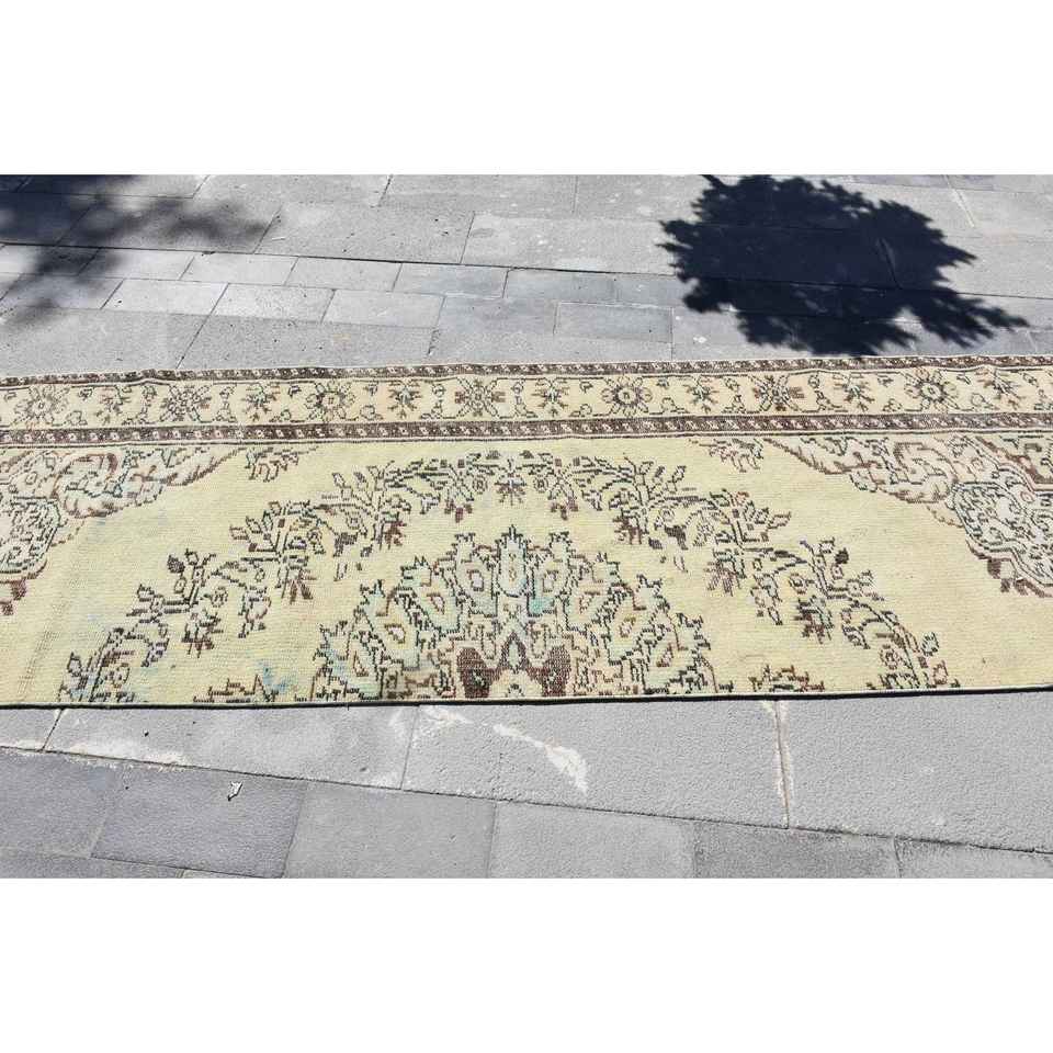 Alfombra Turca, Alfombra Vintage de 3x9.6 pies, Alfombra de Lana con Estampado Animal Marrón y Amarillo