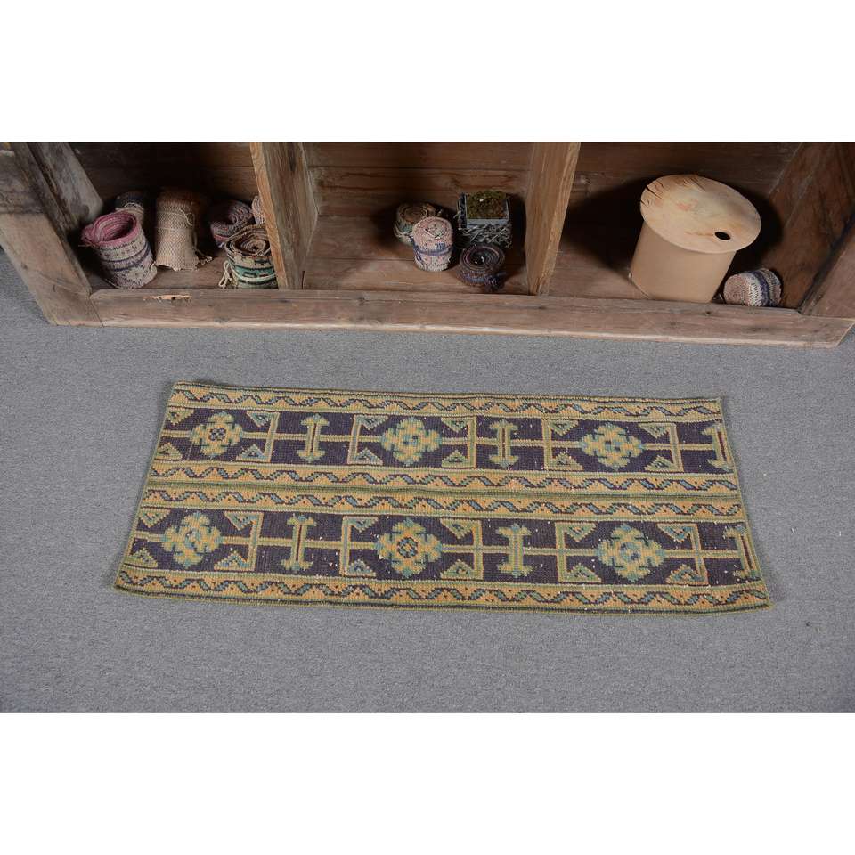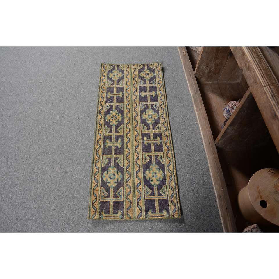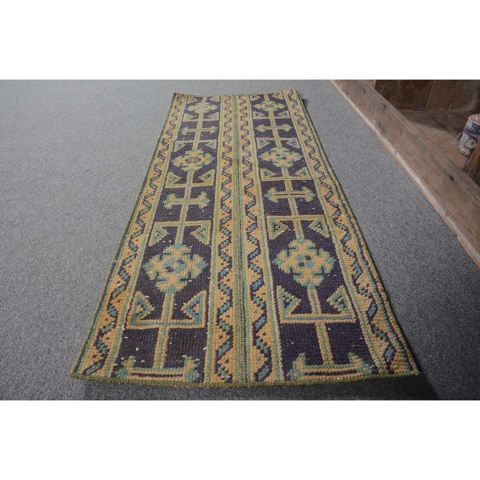 Alfombra Turca, Pequeña, 1.5x3.7 pies, Alfombra Vintage, Alfombra de Lana Azul Verde del Suroeste