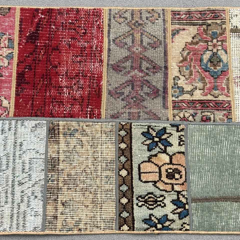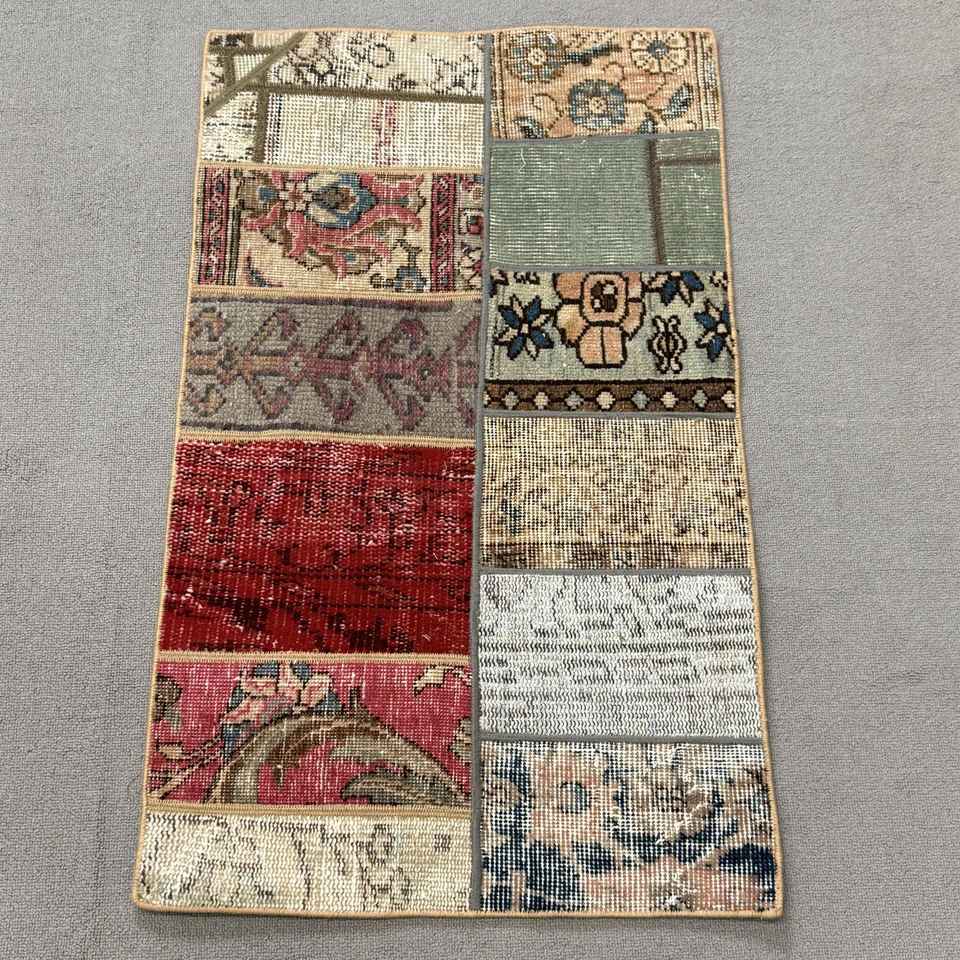 Alfombra Turca, Alfombra Pequeña de 1.7x2.9 pies, Alfombra Roja con Diseño de Patchwork