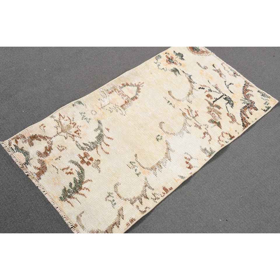 Alfombra Turca, Pequeña, 2x3.6 pies, Alfombra Vintage, Alfombra de Lana con Puntos Blancos
