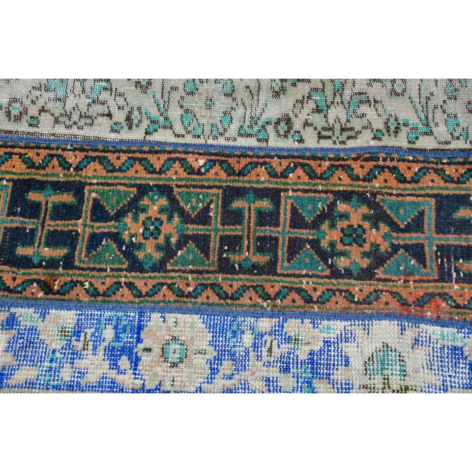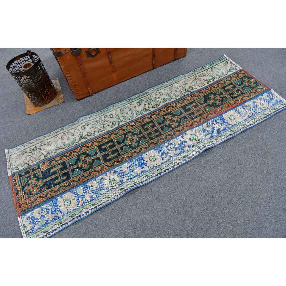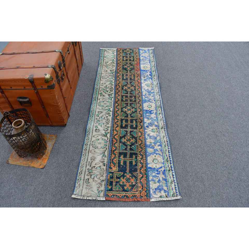 Alfombra Turca de 2.2x5.9 pies, Alfombra Marroquí Vintage de Lana, Diseño de Patchwork Ecológico con Respaldo de Látex, Alfombra Tradicional Azul