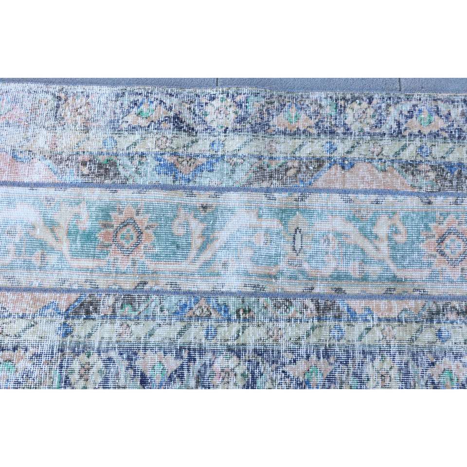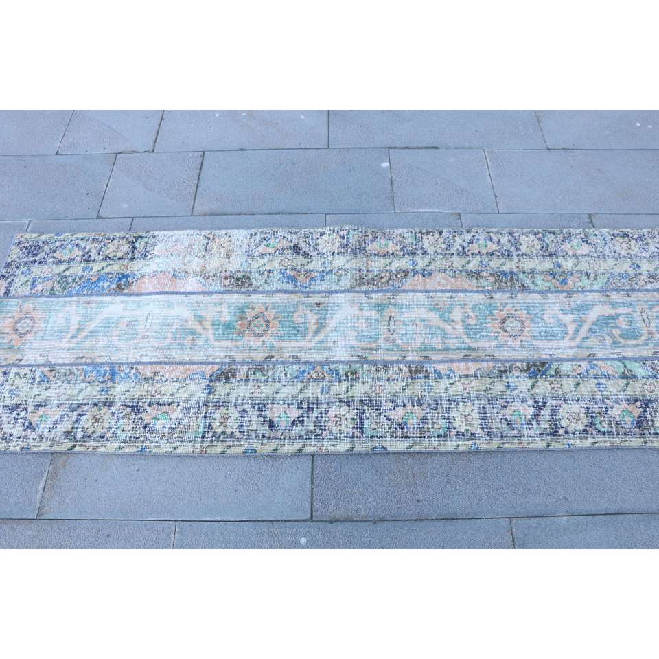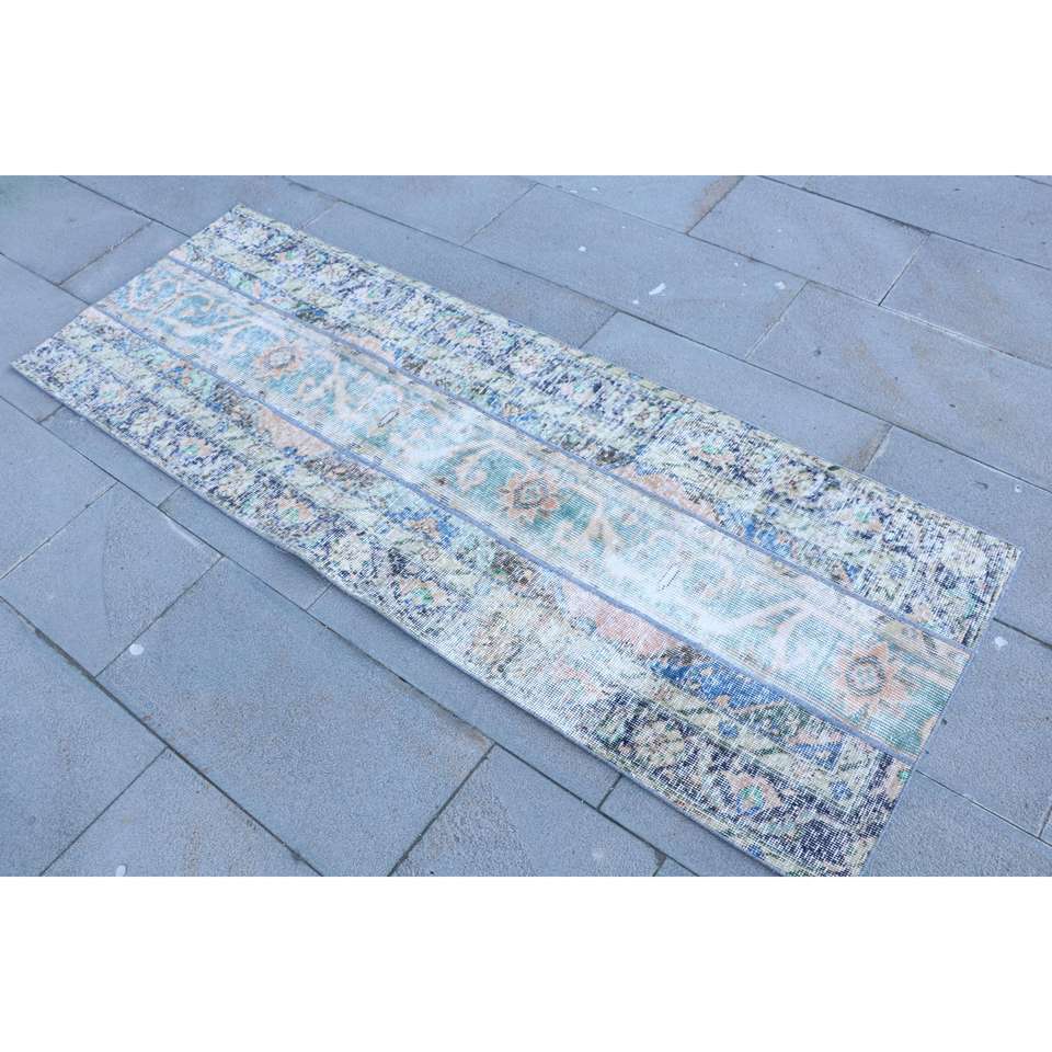 Alfombra Turca, Alfombra Vintage de 2.3x6.4 pies, Alfombra de Lana Azul