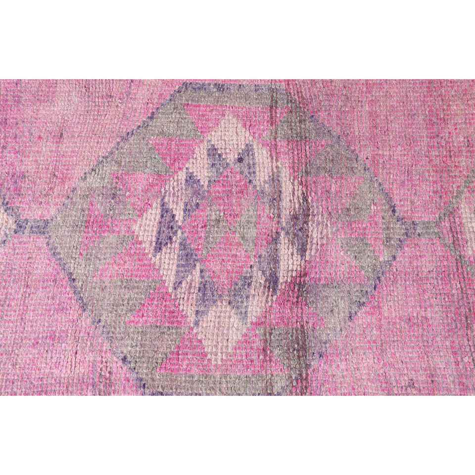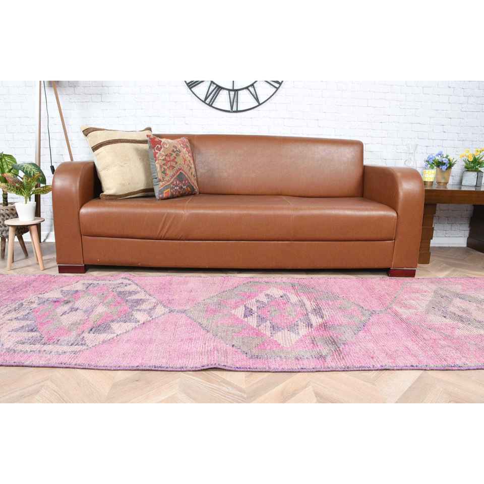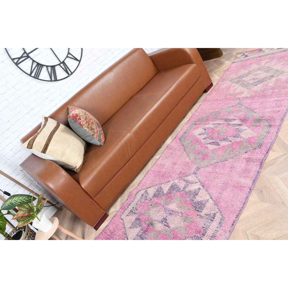Alfombra Turca de Pasillo 2.9x12.1 pies (87x368 cm), Alfombra Vintage con Borde Rosa
